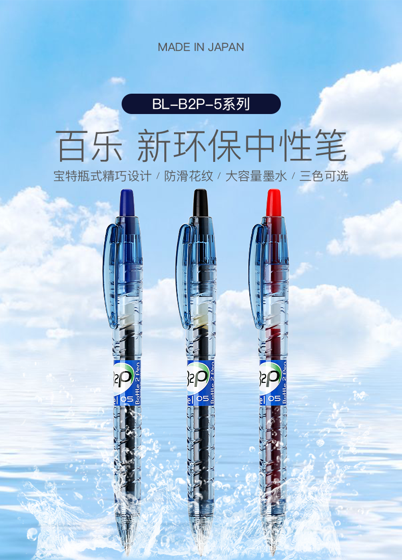 百乐B2P矿泉水瓶笔宝特中性笔0.5黑红