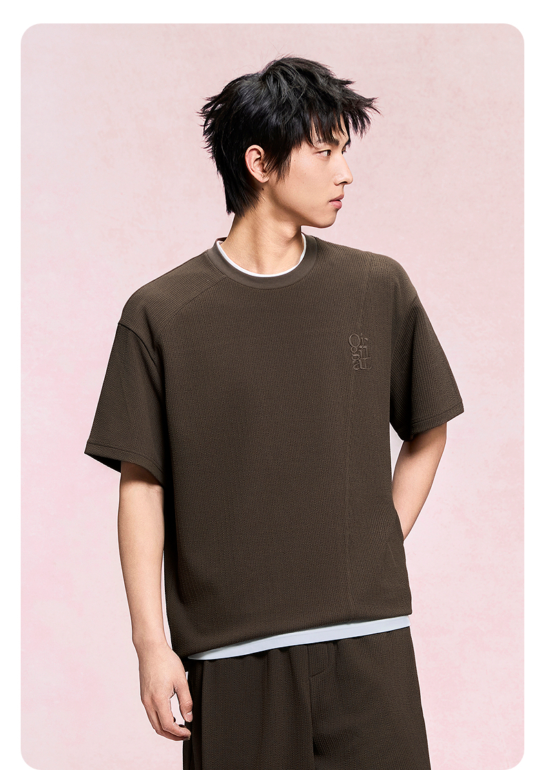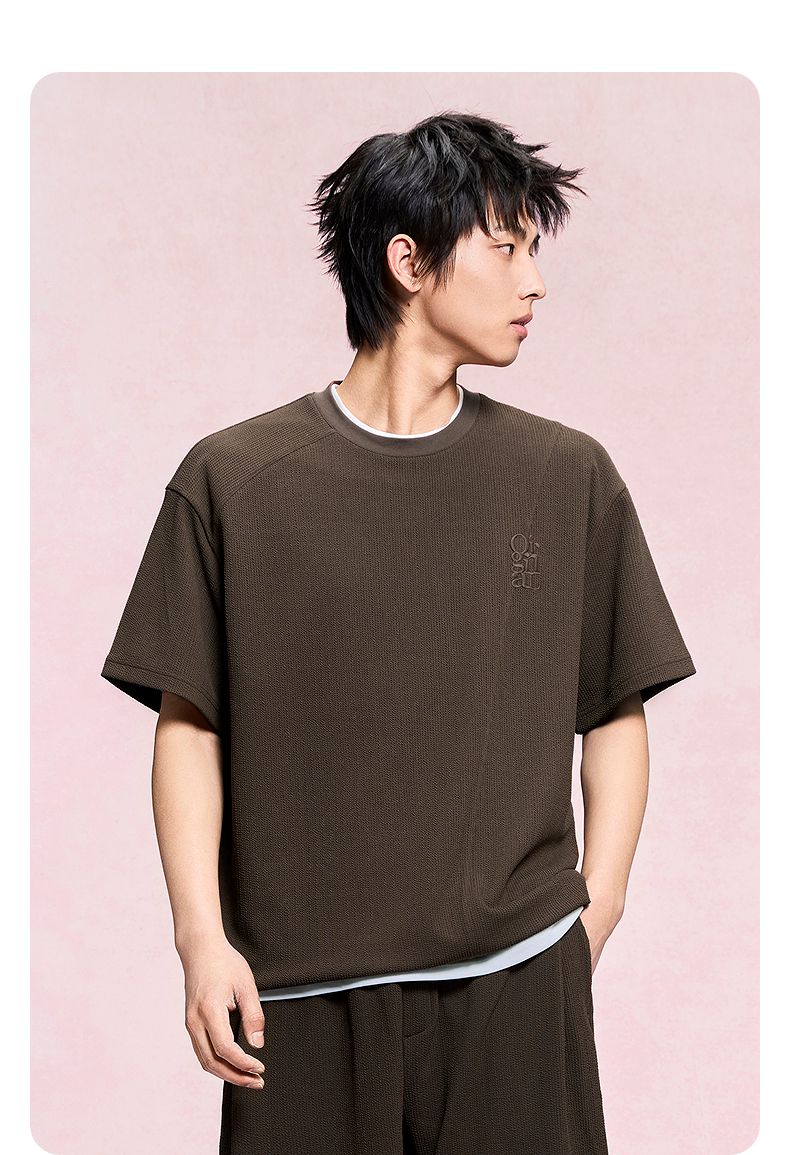 GXG男装 圆领T恤肌理材质上衣短袖针织 2025年夏季热卖
