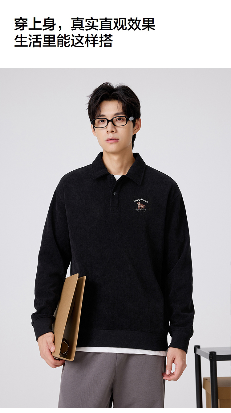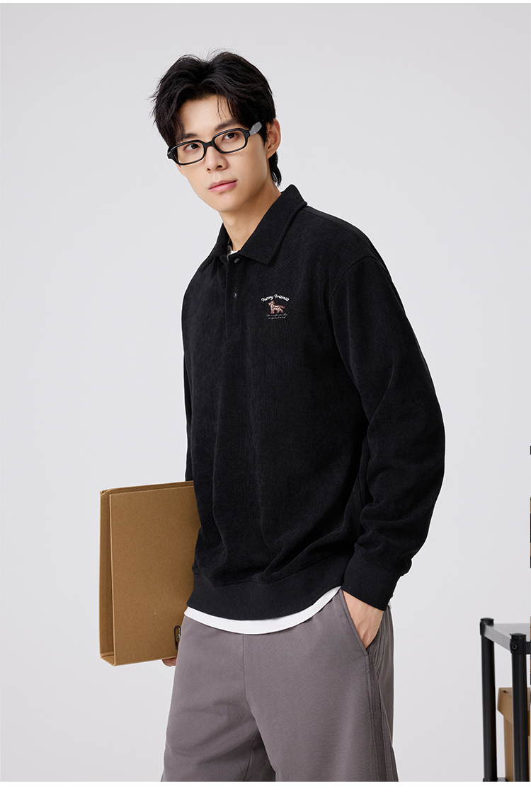 gxgjeans 男装25秋款男士长袖POLO衫个性绣花柔软亲肤透气日常百搭打底衫K&C