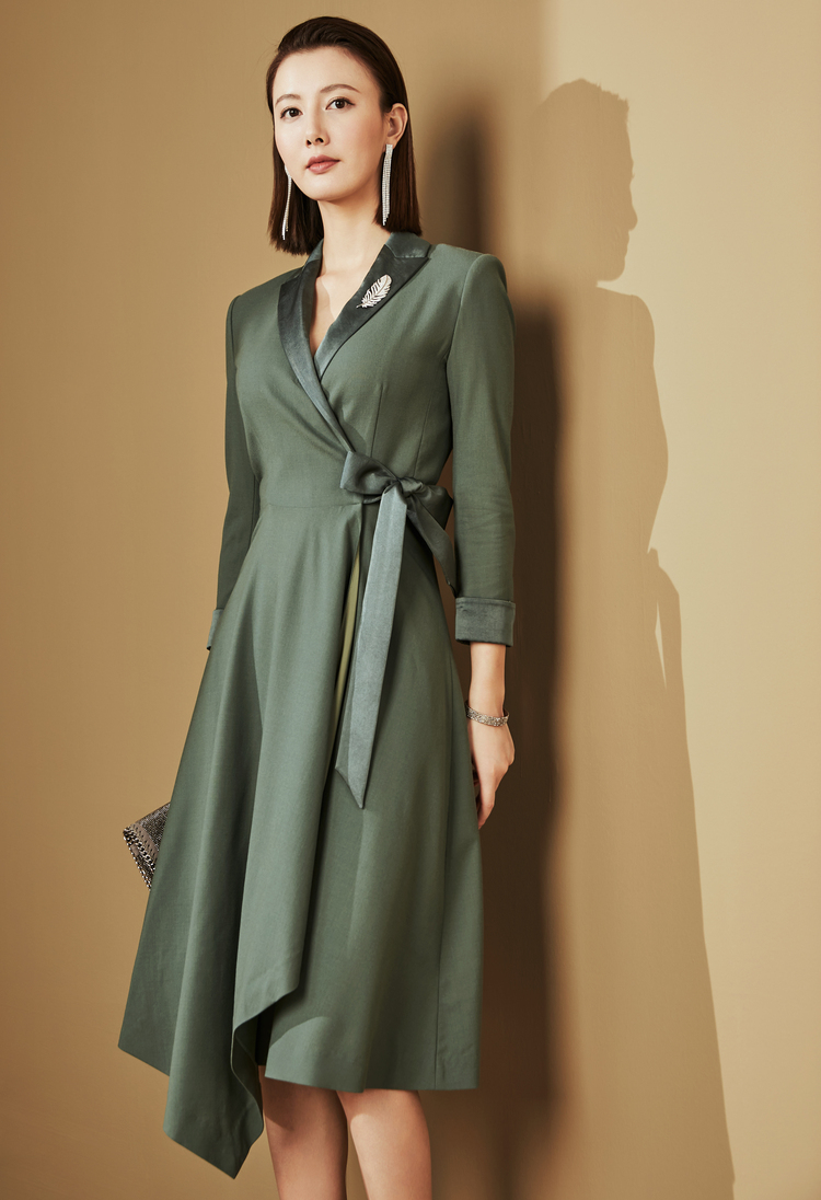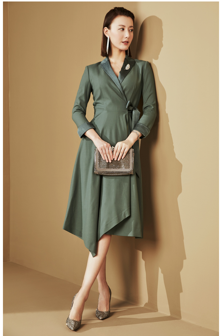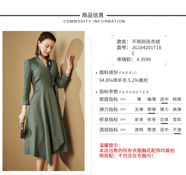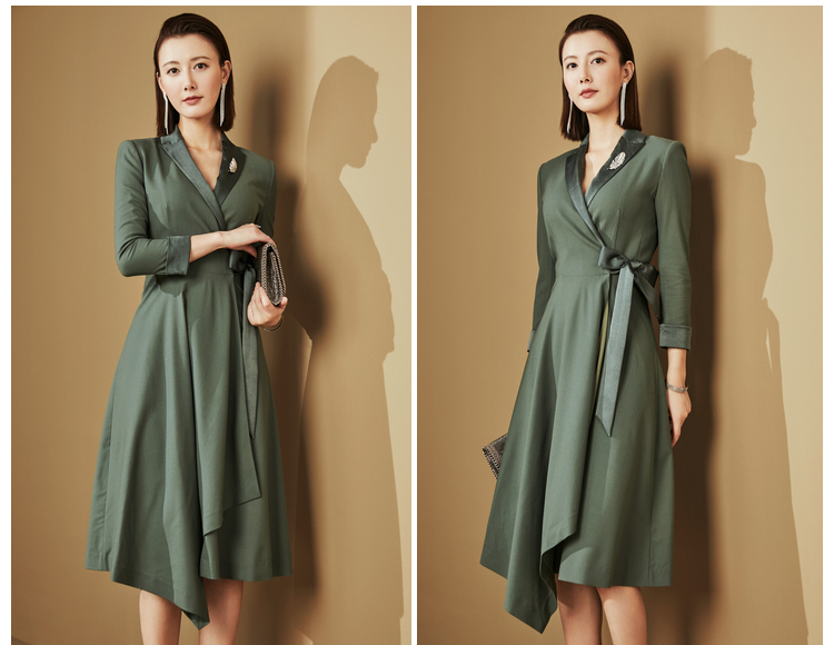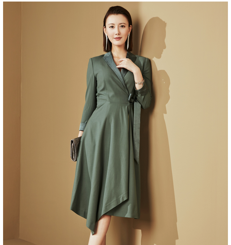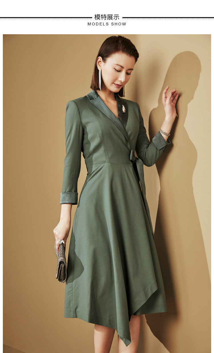 JG184201T1XC刚柔并济-JG184201T1XC颈袖添香季新款气质时尚女士修身纯色长袖不规则绑带连衣裙