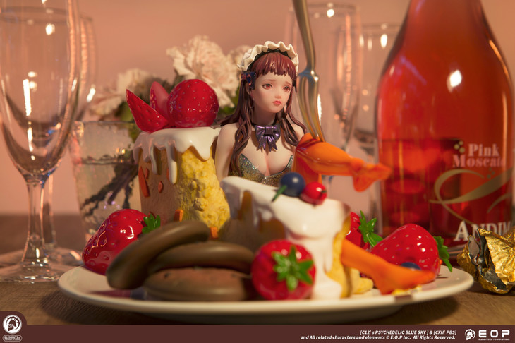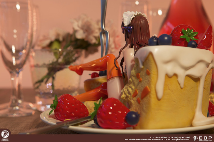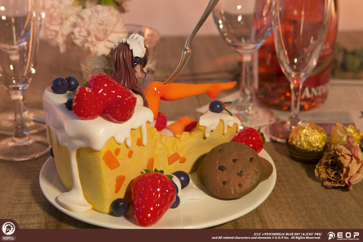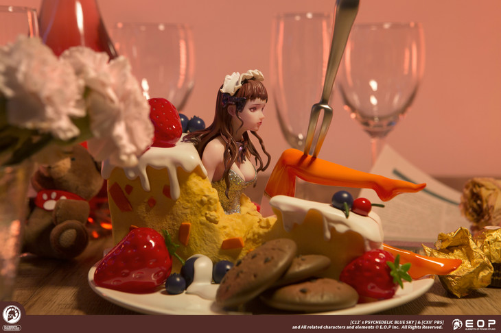 除了少女本体之外,模型的其他细节也非常考究。无论是起司蛋糕,草莓,曲奇饼干,还是点缀在蛋糕上的蓝莓,无一例外都传递给人一种甜甜酸酸又轻柔飘然的气息。少女情怀总是春,试想一下,这样一个处处都透露着充满惊喜细节的少女摆在面前,谁不想“大快朵颐”一番?