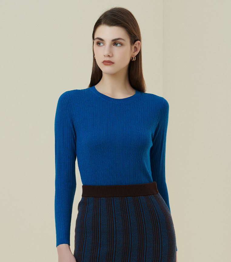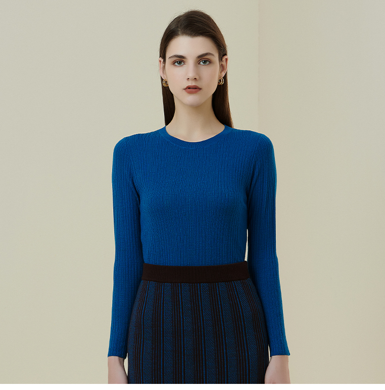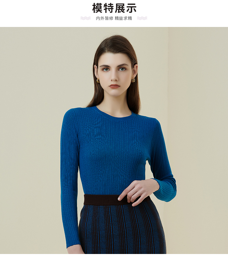 METTE羊绒世家2021年秋冬新品女士100%羊毛衫低圆领绞花镂空毛衣