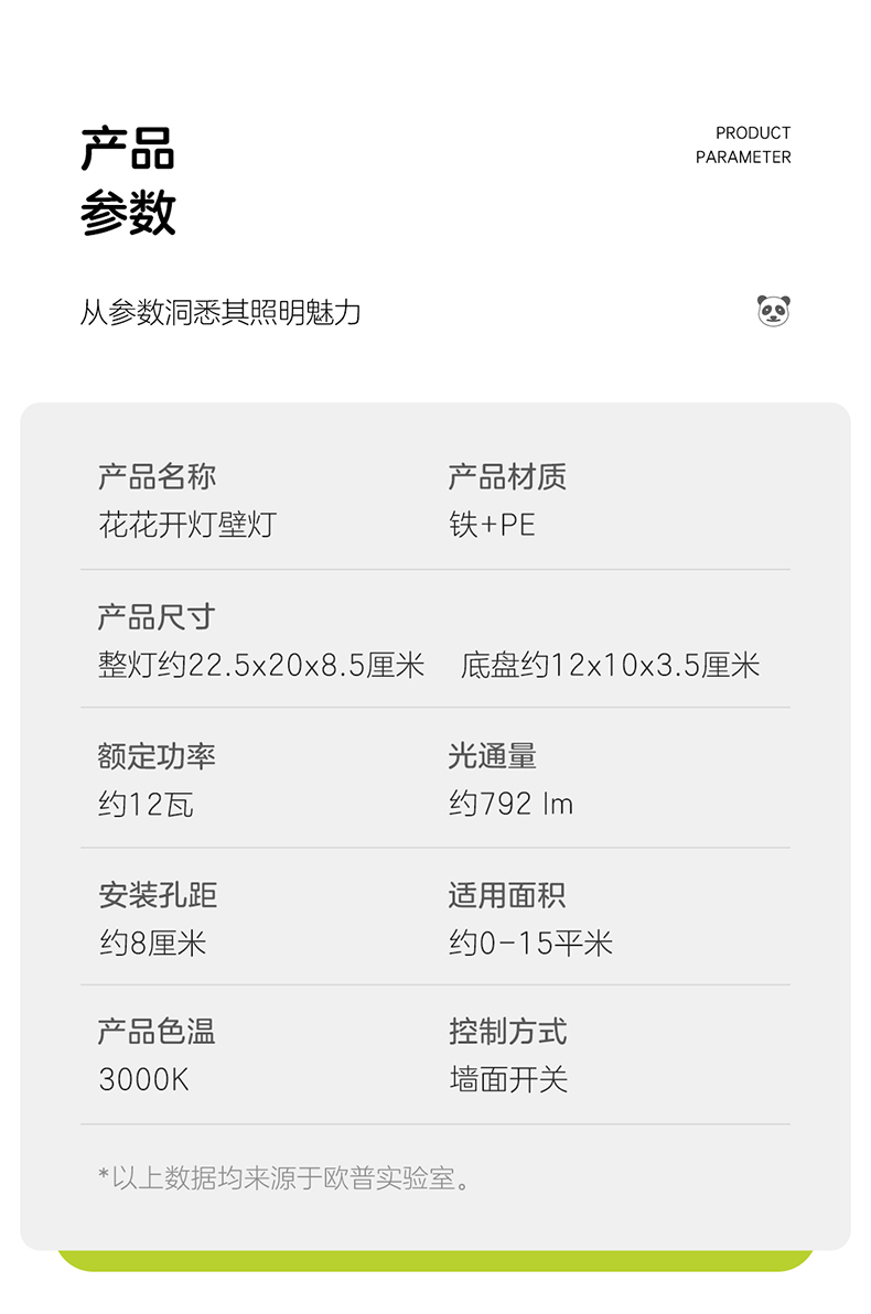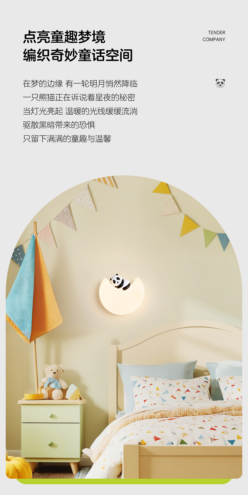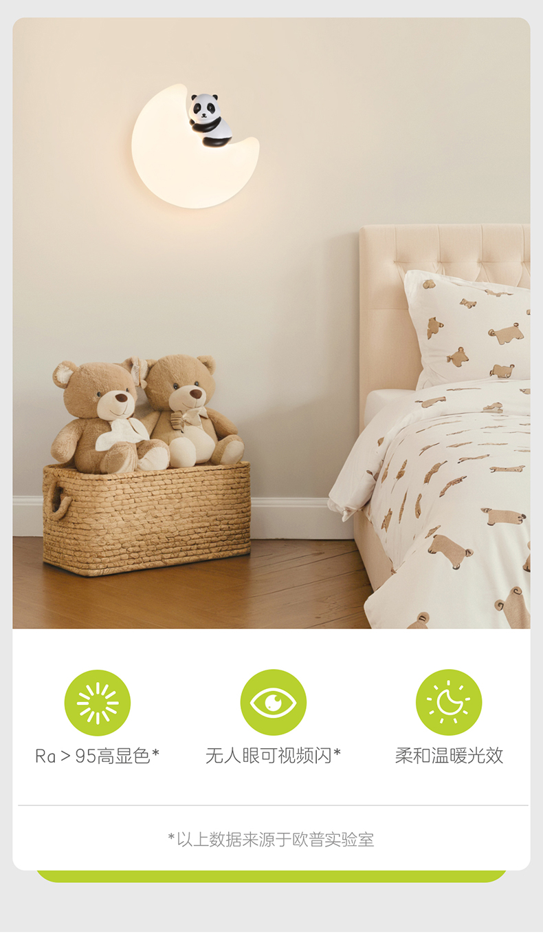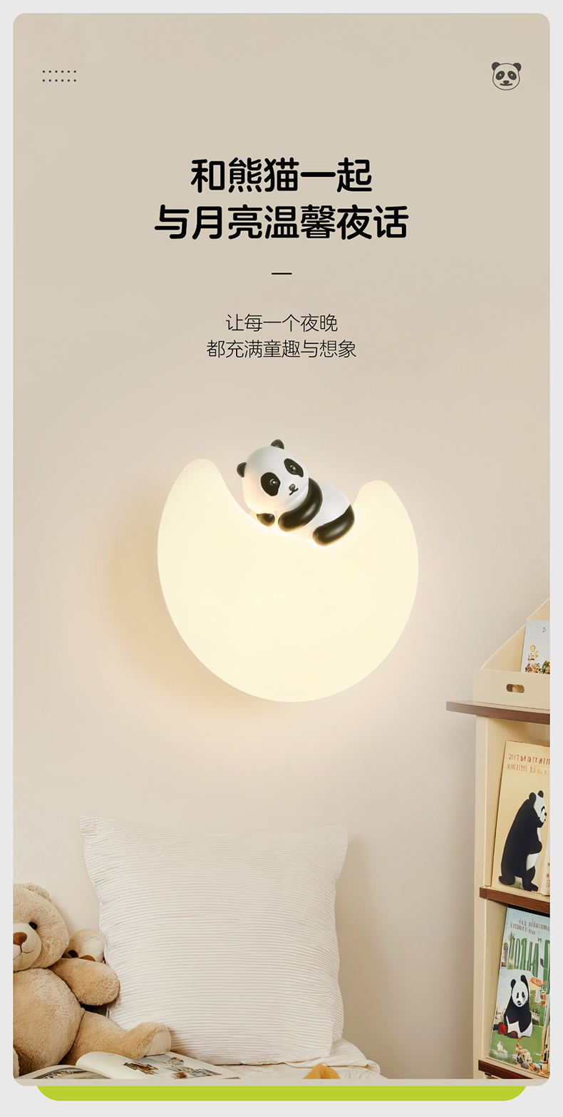 欧普(OPPLE)花花开灯·奶油风熊猫壁灯夜灯Ra95儿童房卧室床头过道走廊