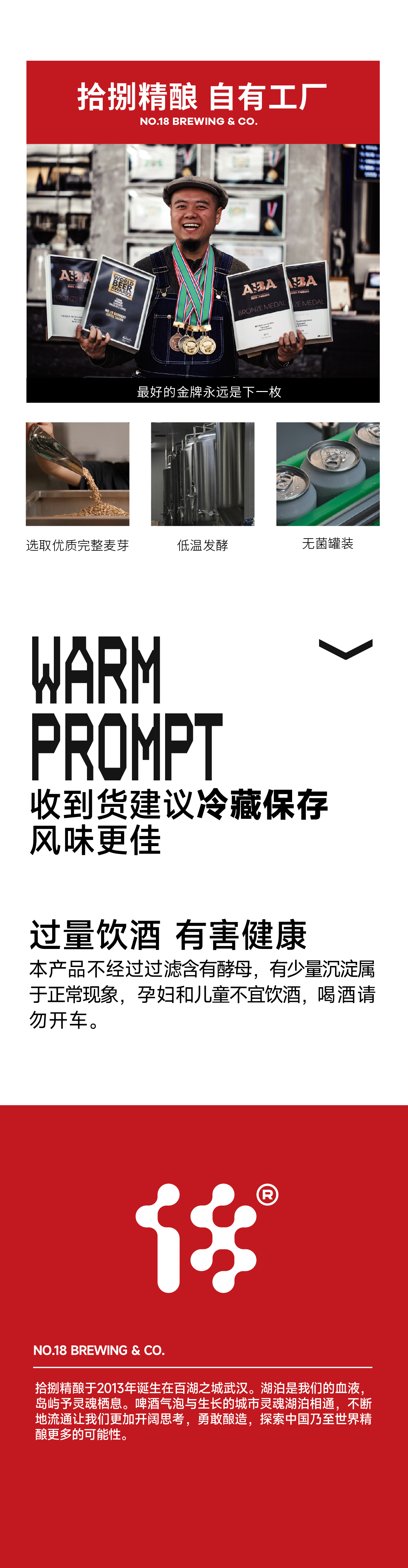- 拾捌精酿酒厂创始于2013年,斩获15枚世界级精酿大奖。运营的精品餐酒吧18号酒馆,入选《LONELY PLANET》环球啤酒之旅中国五佳的精酿啤酒店铺。