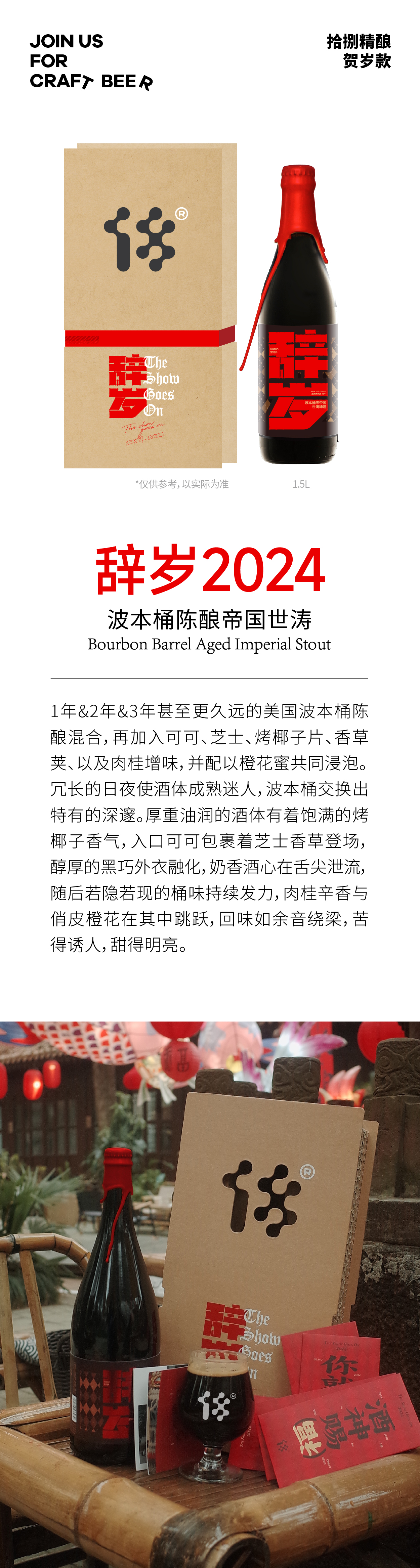 拾捌精酿 新年贺岁款 辞岁2024·波本桶陈帝国世涛啤酒 1.5L大大礼盒