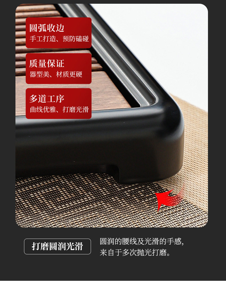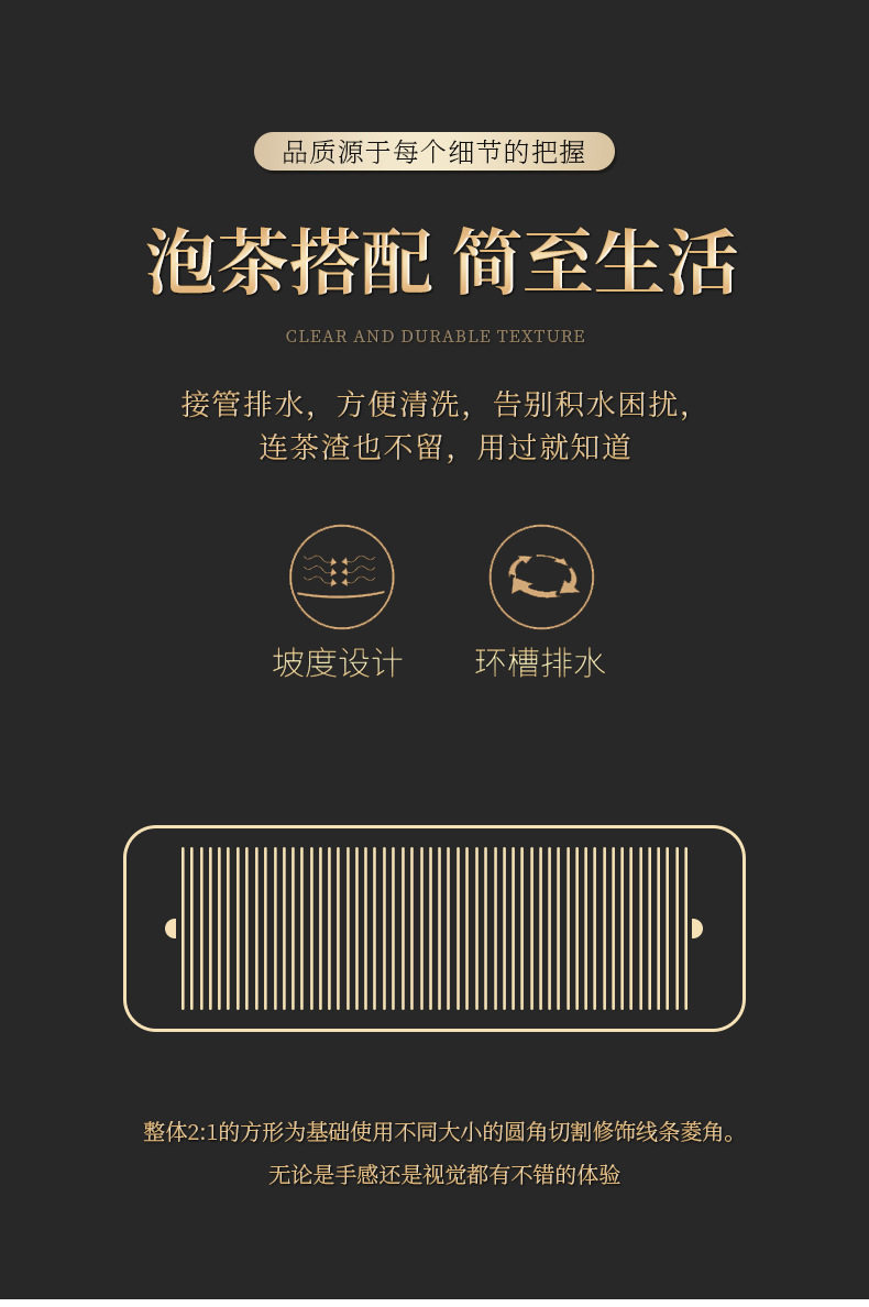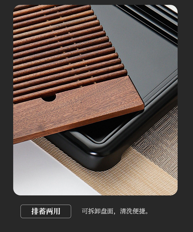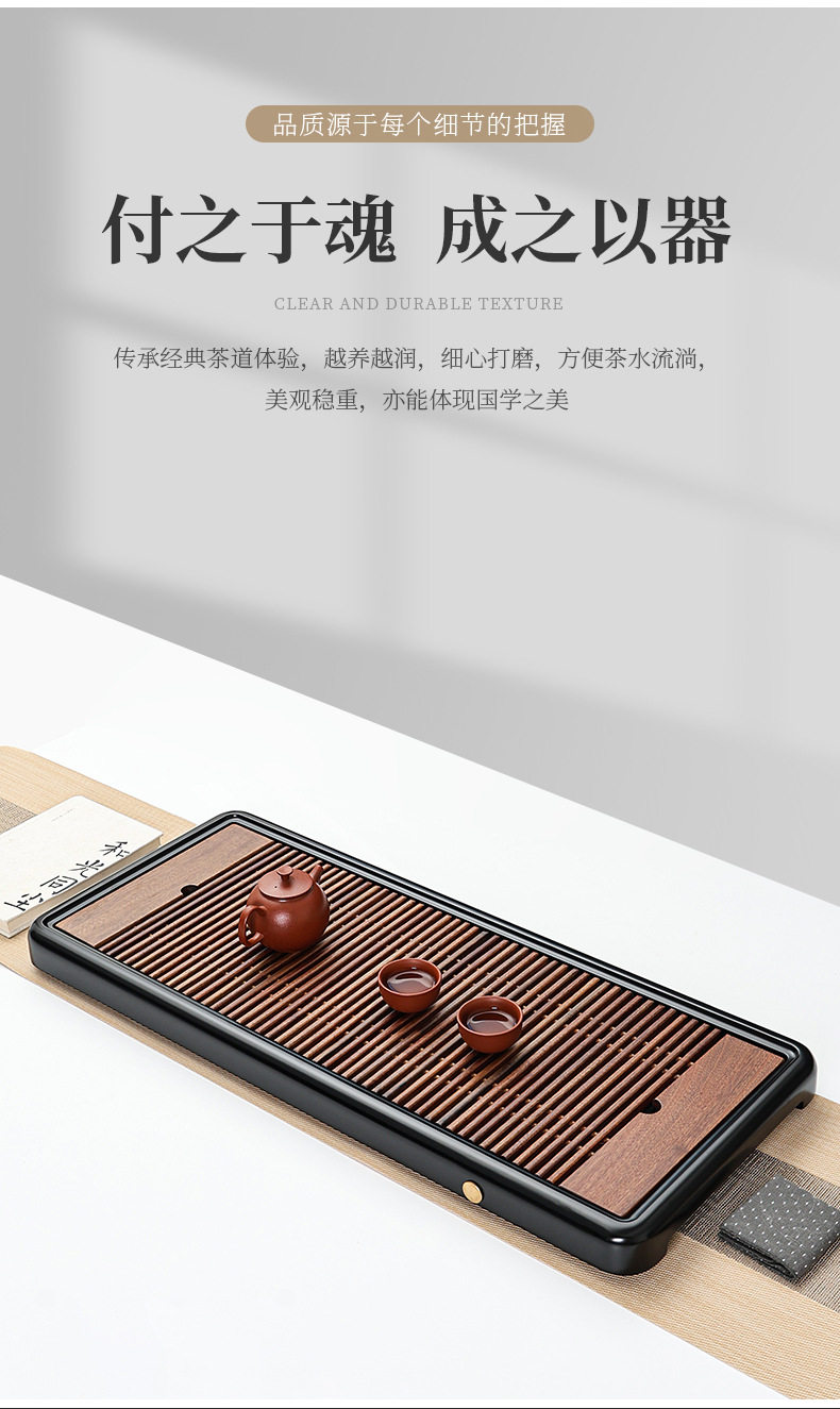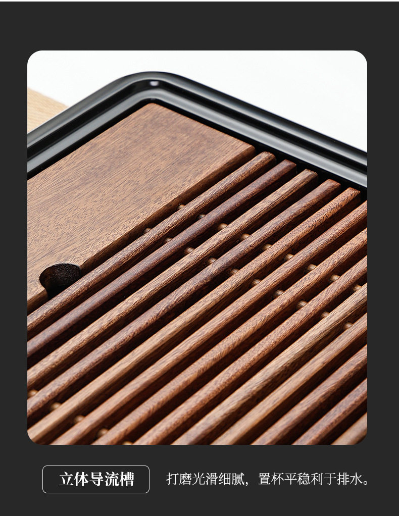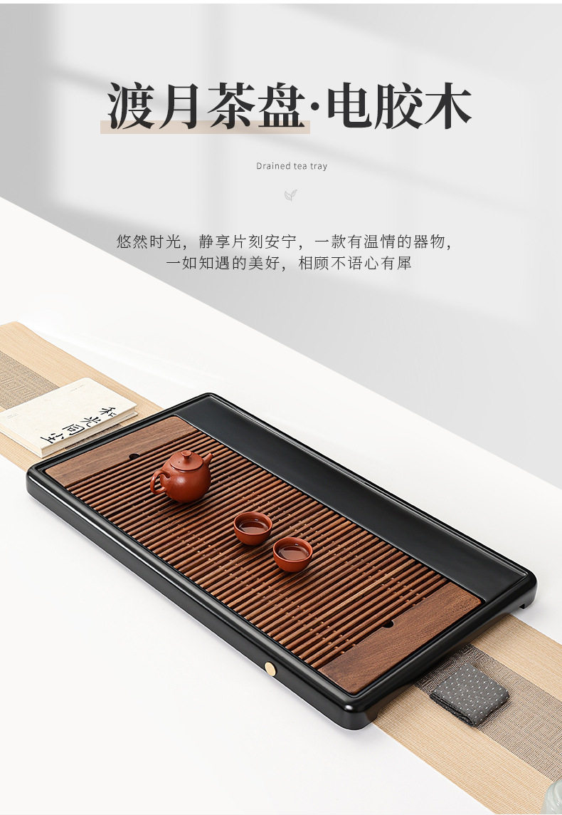 义通/渡月电木茶盘家用储水托盘黑檀色茶台现代简约功夫办公室电胶木茶具