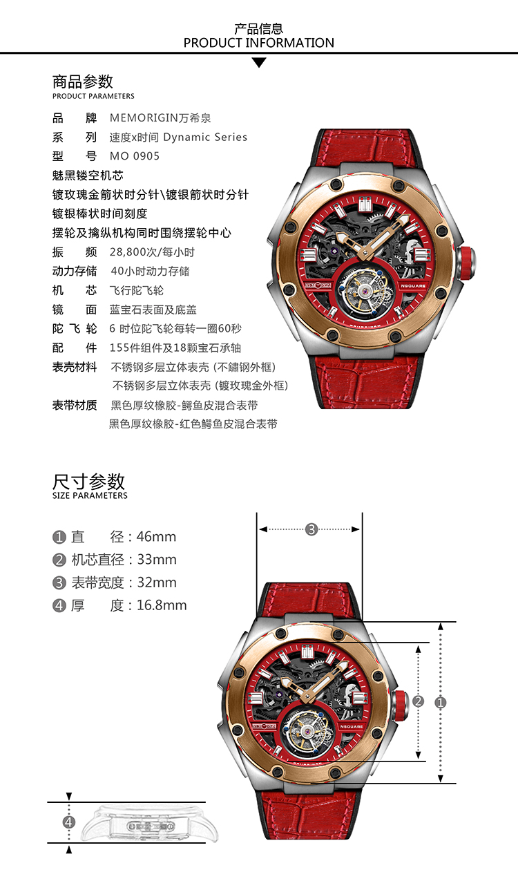 MEMORIGIN万希泉速度x时间 DynamicSeries陀飞轮男腕表透底机械表
