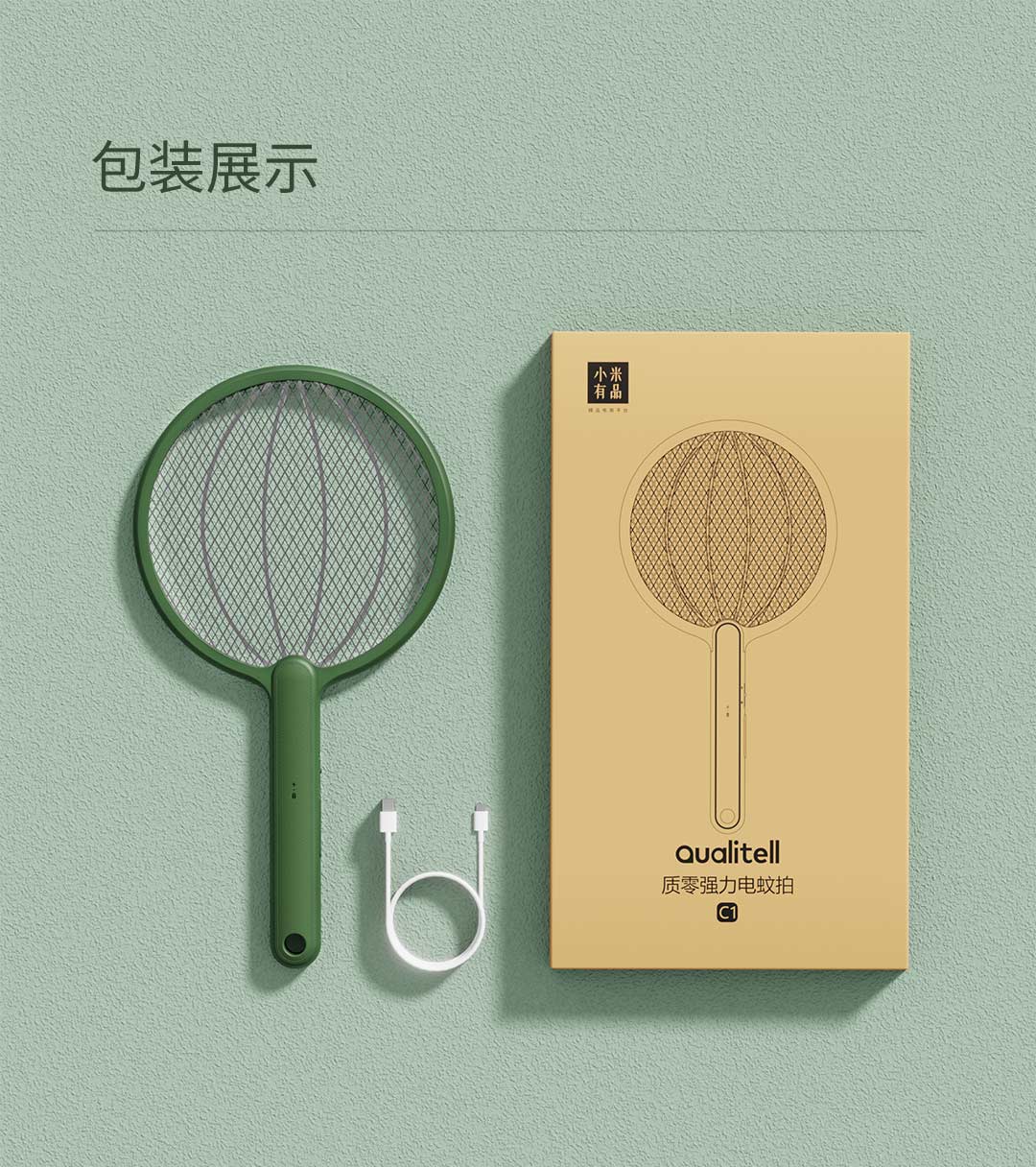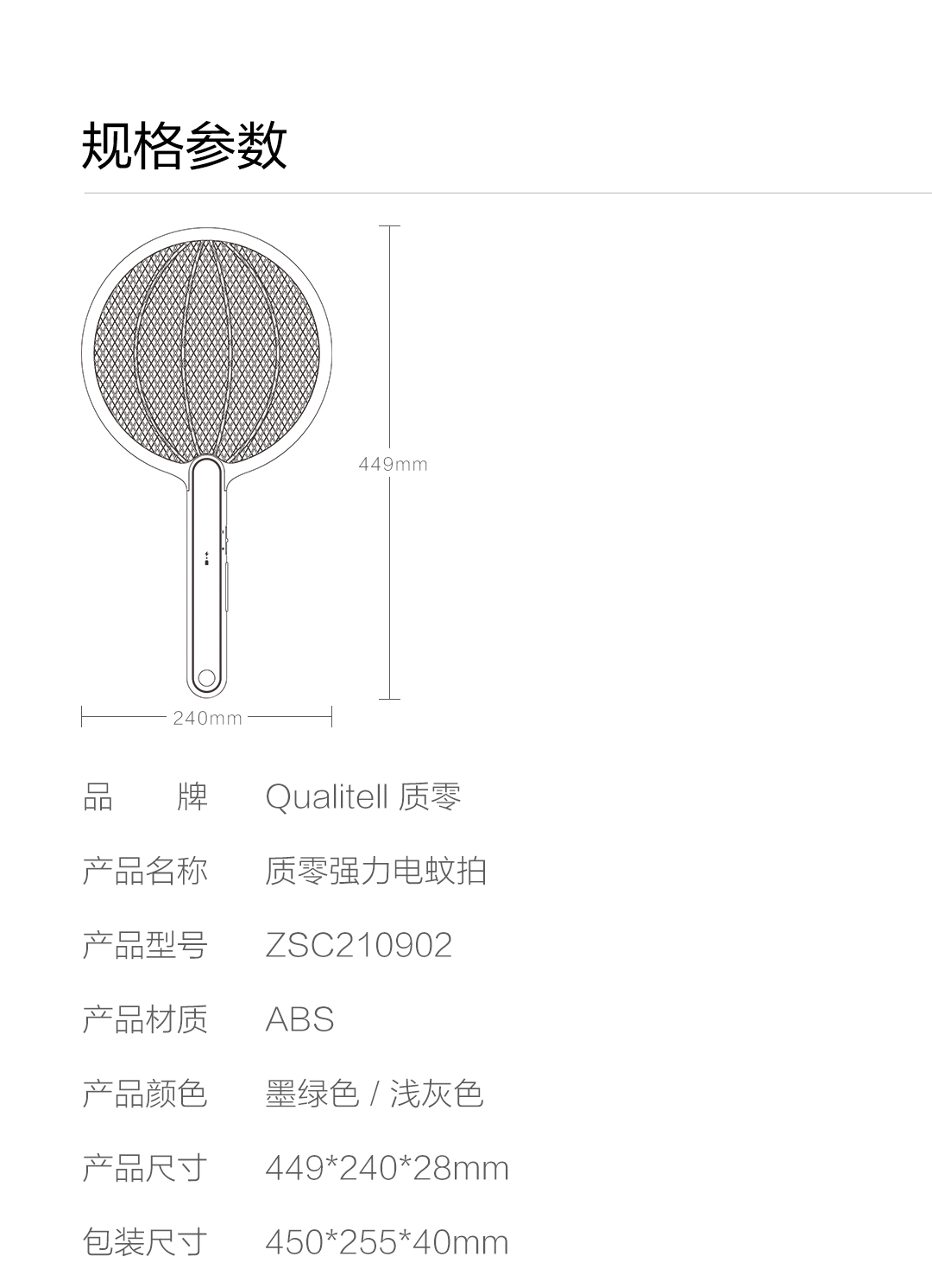 【分仓直发包邮】Qualitell质零电蚊拍(浅灰色/墨绿色)C1