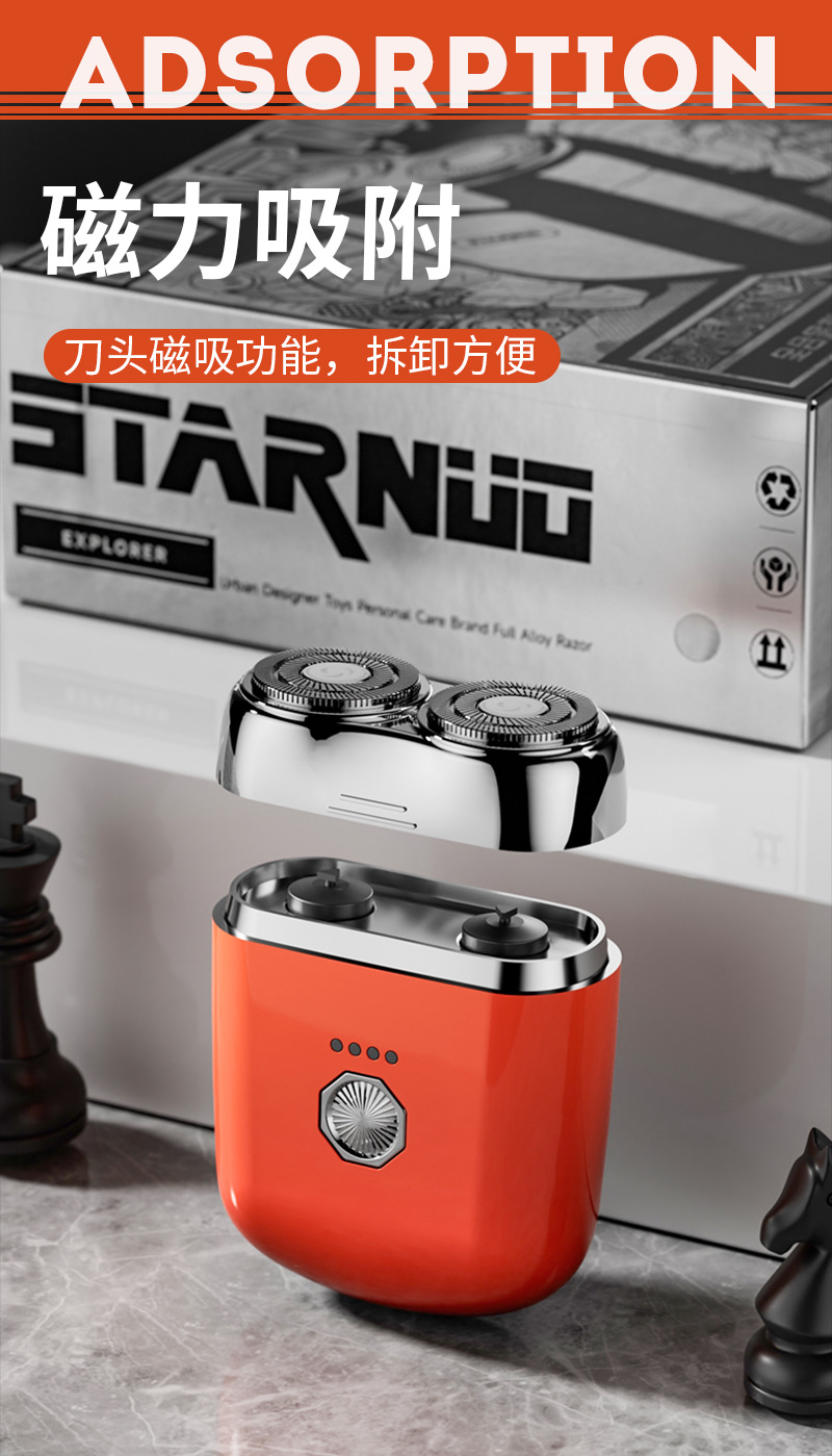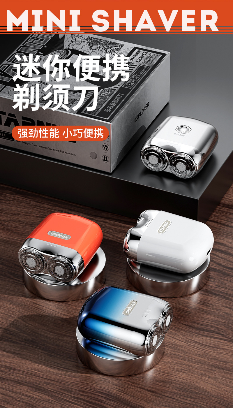 又潮又可爱的便携剃须刀,短途出差旅行用,巨方便!包装也是礼盒质感非常棒,很潮很好看!机身是全合金的,一跑车烤漆工艺,拿在手上手感超好!