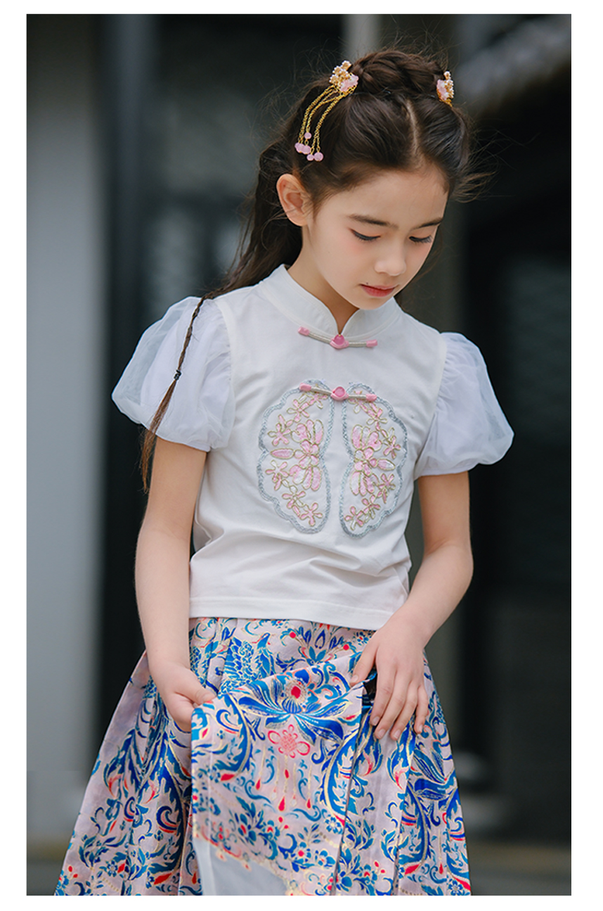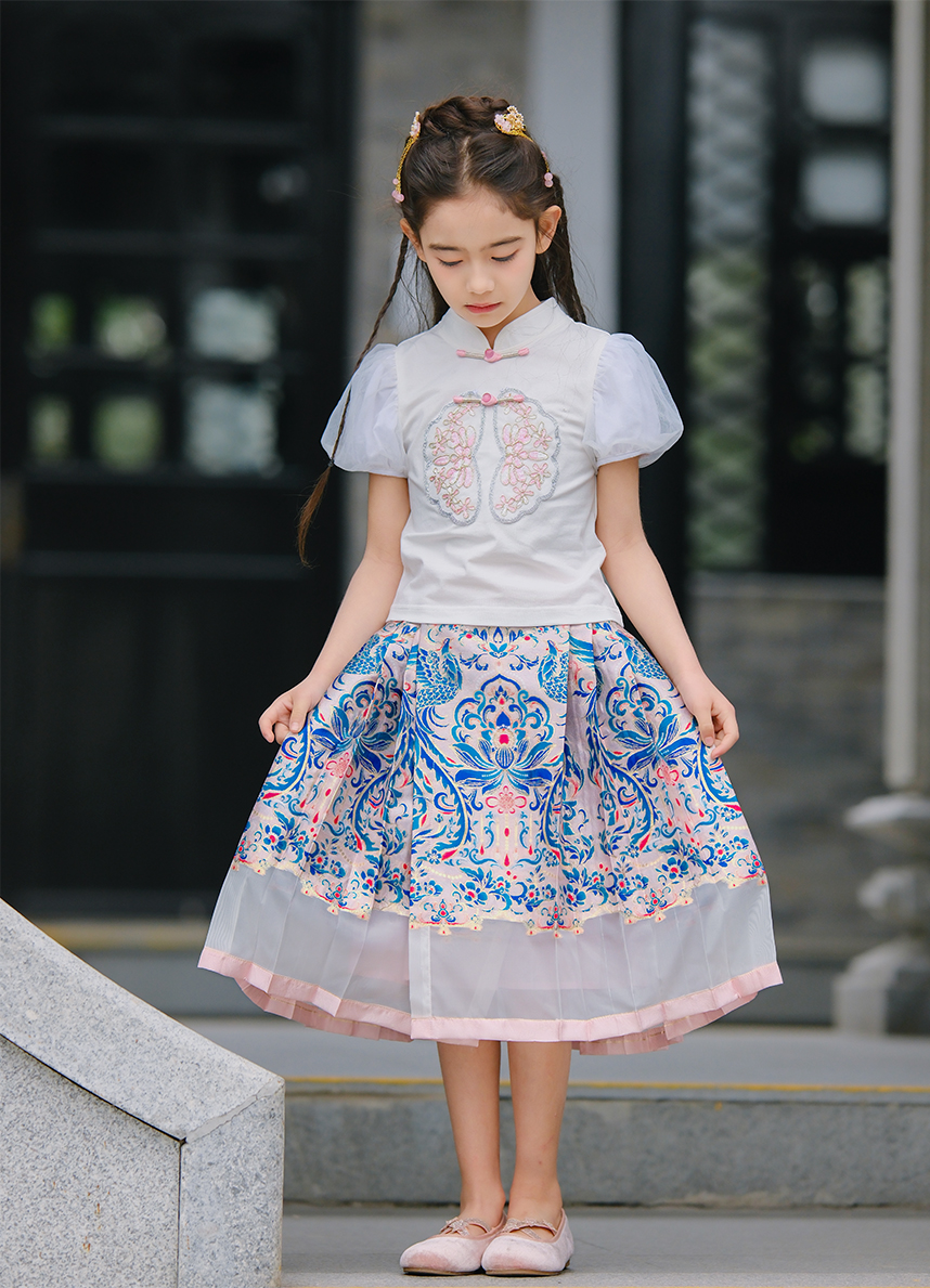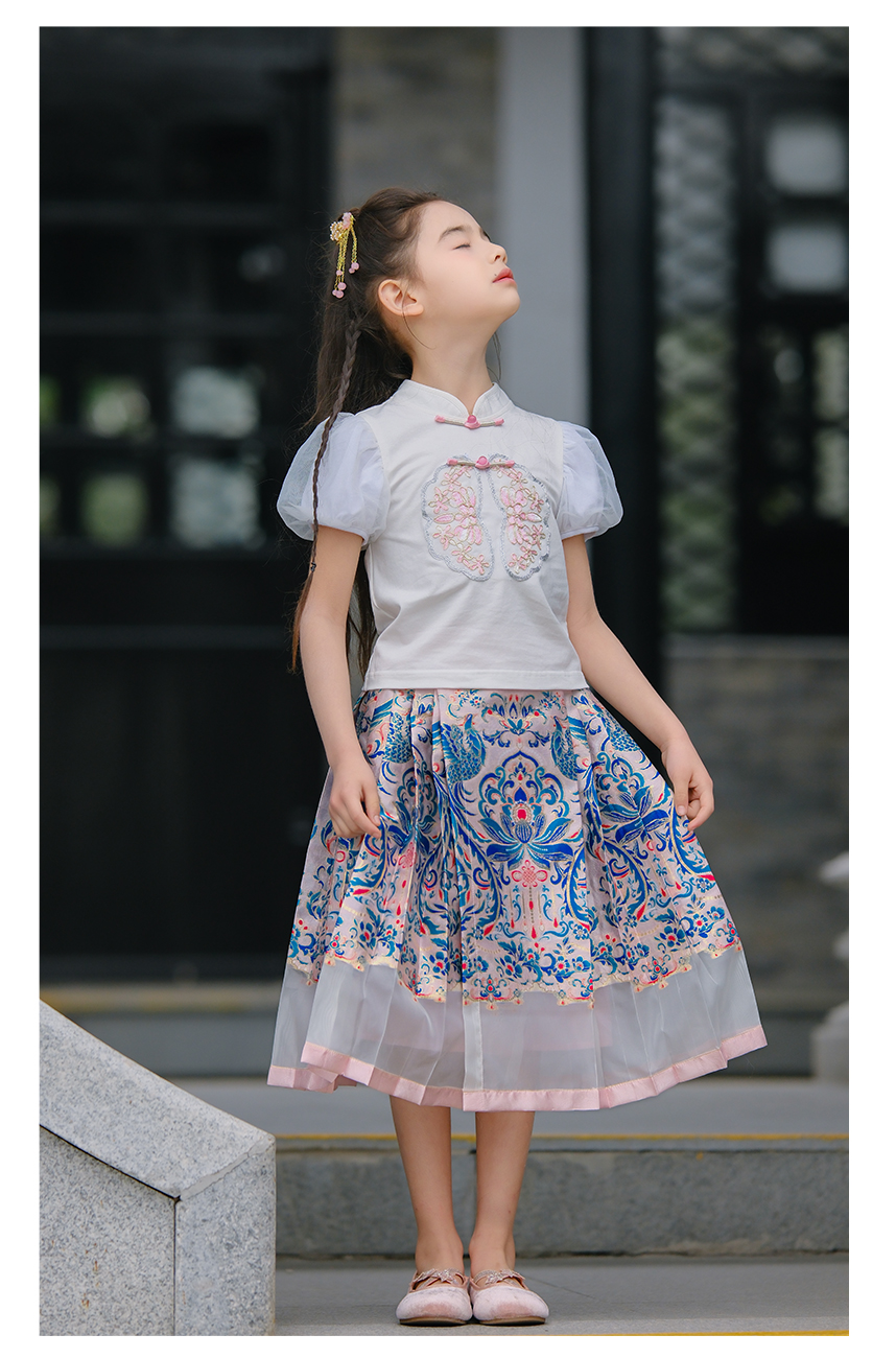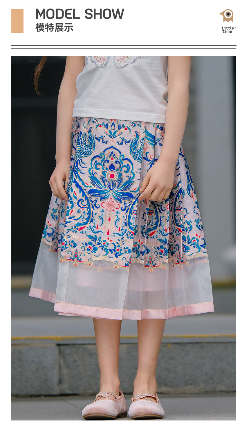 littletime女童汉服2024春夏装新款粉色凤凰马面裙高级感儿童裙子