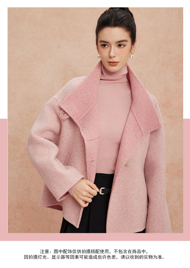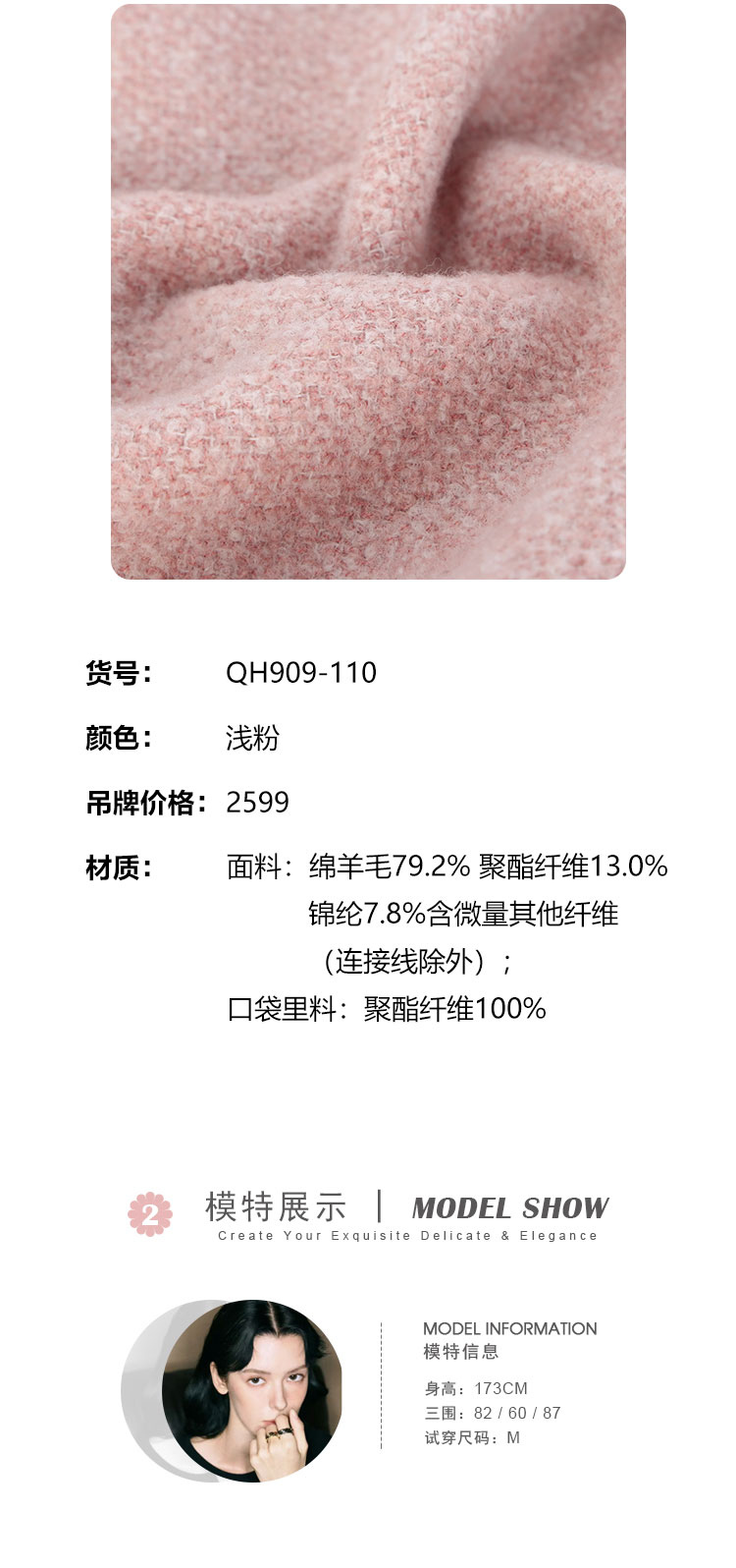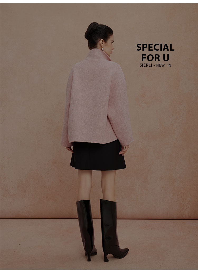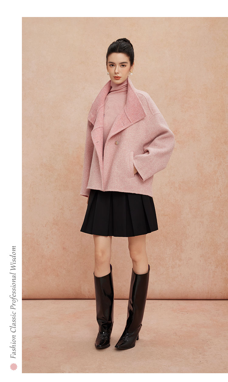 QH909斯尔丽2025新款韩版宽松廓形斜纹杂花纹理时尚双面双色羊毛大衣