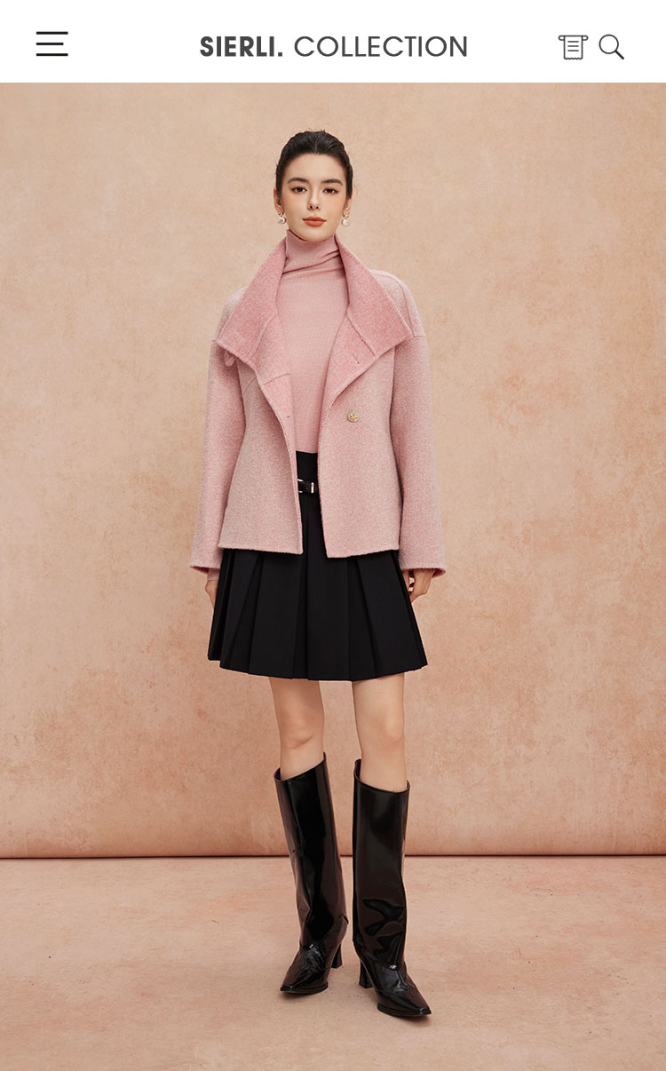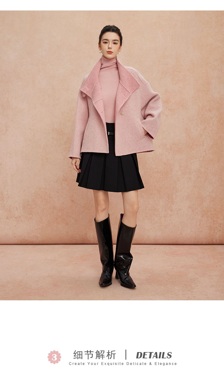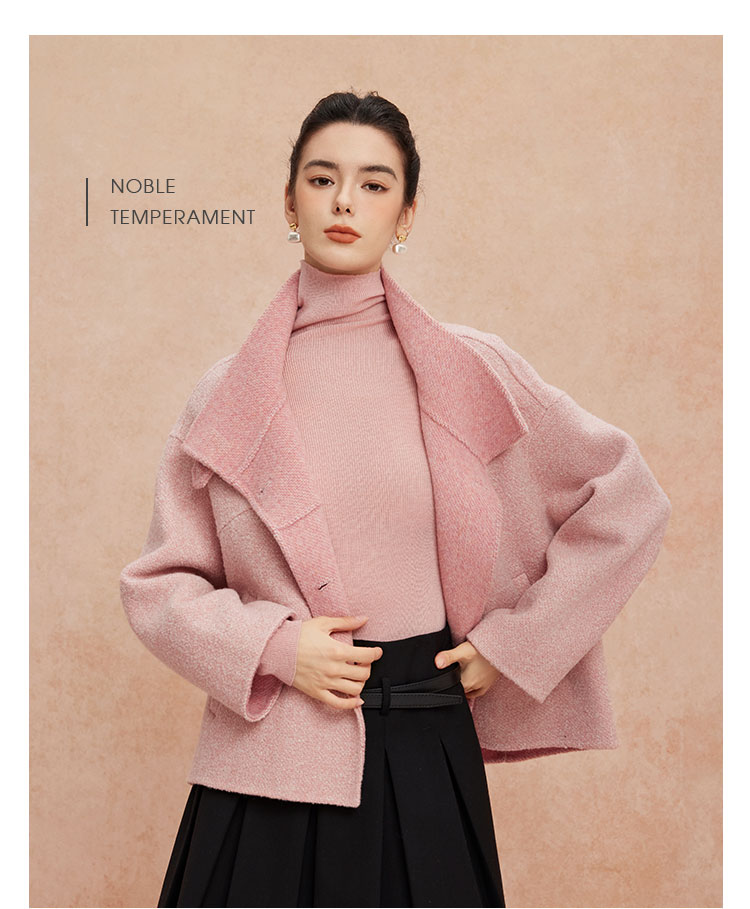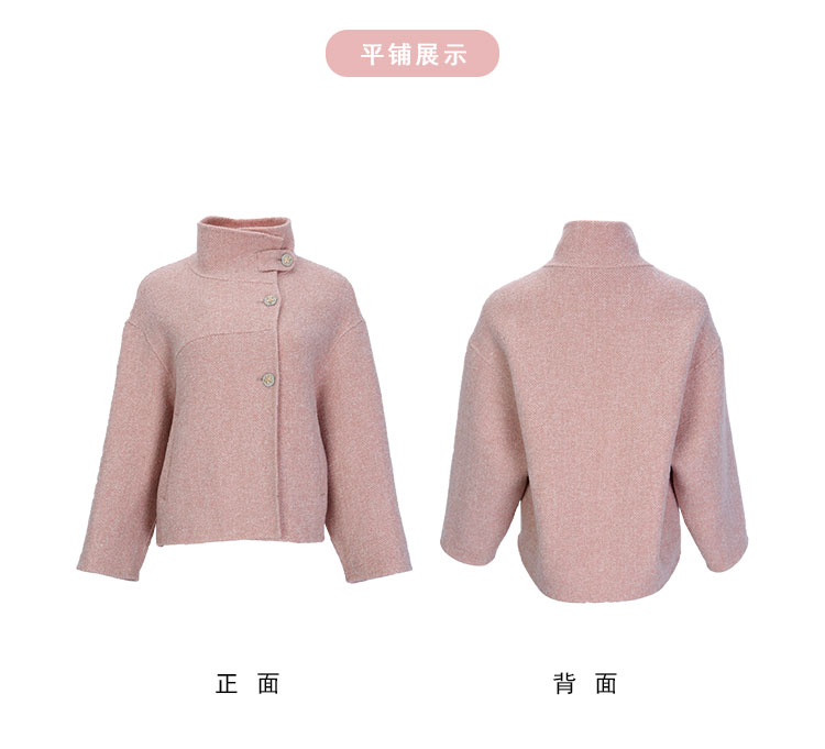 QH909斯尔丽2025新款韩版宽松廓形斜纹杂花纹理时尚双面双色羊毛大衣