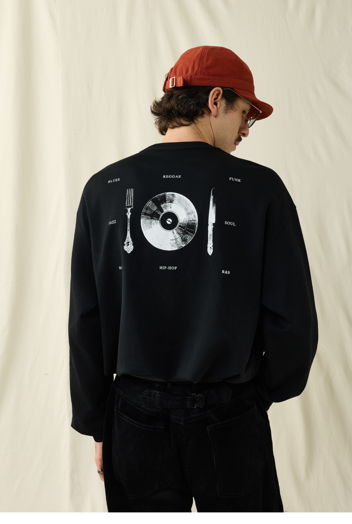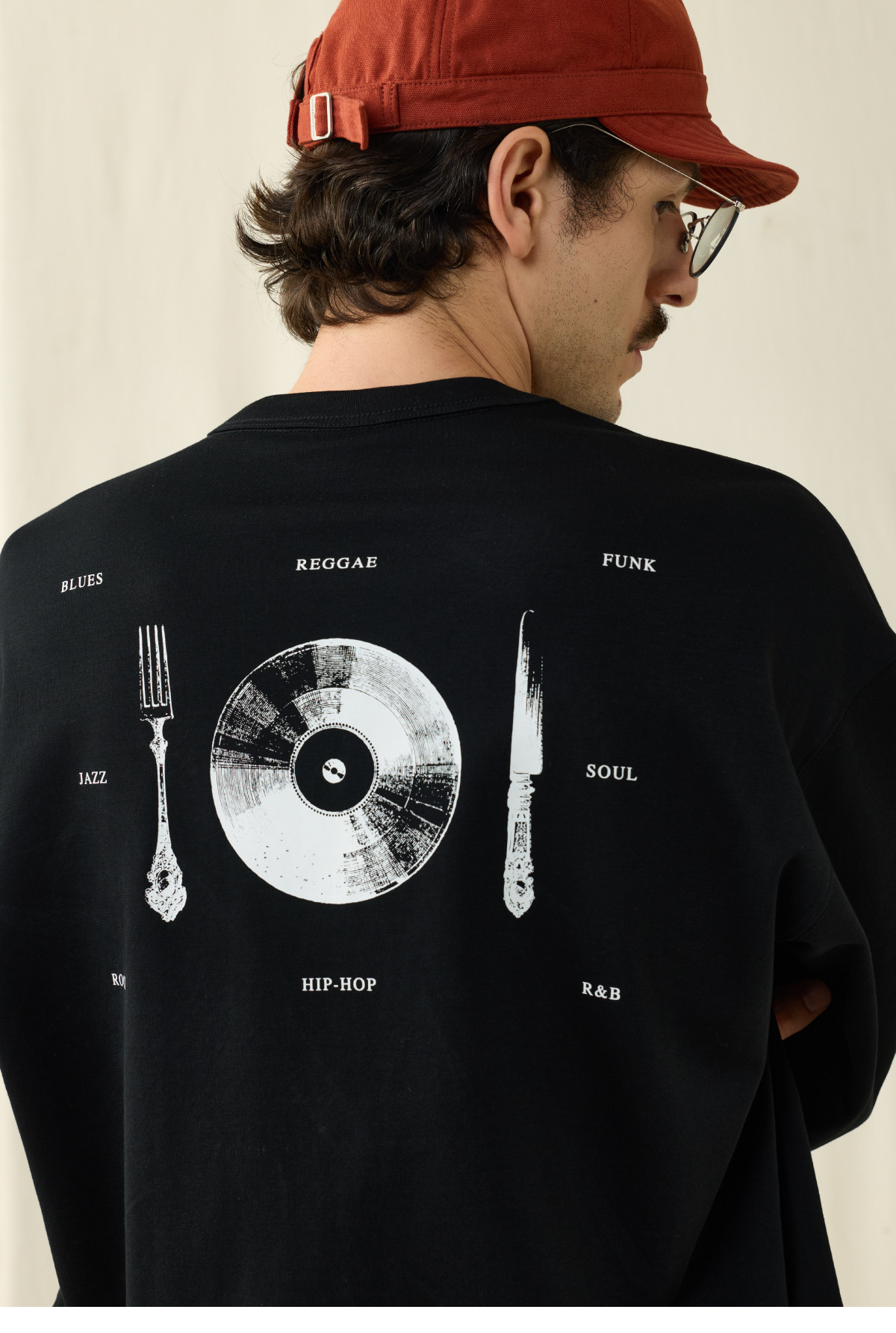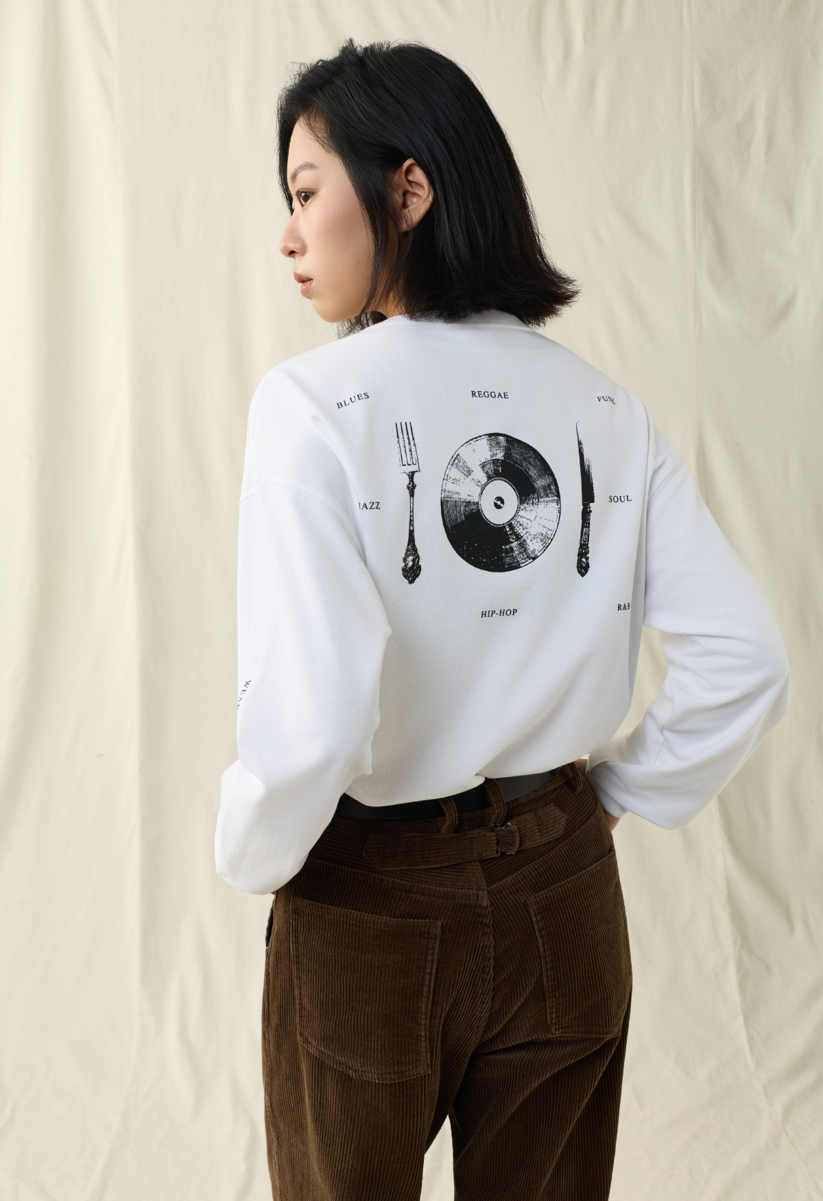 SUPERTOFU(SPTF)/ ACDT-AW25-T045/好食音乐 抗皱舒适 复古趣味印花 新疆棉长袖T恤