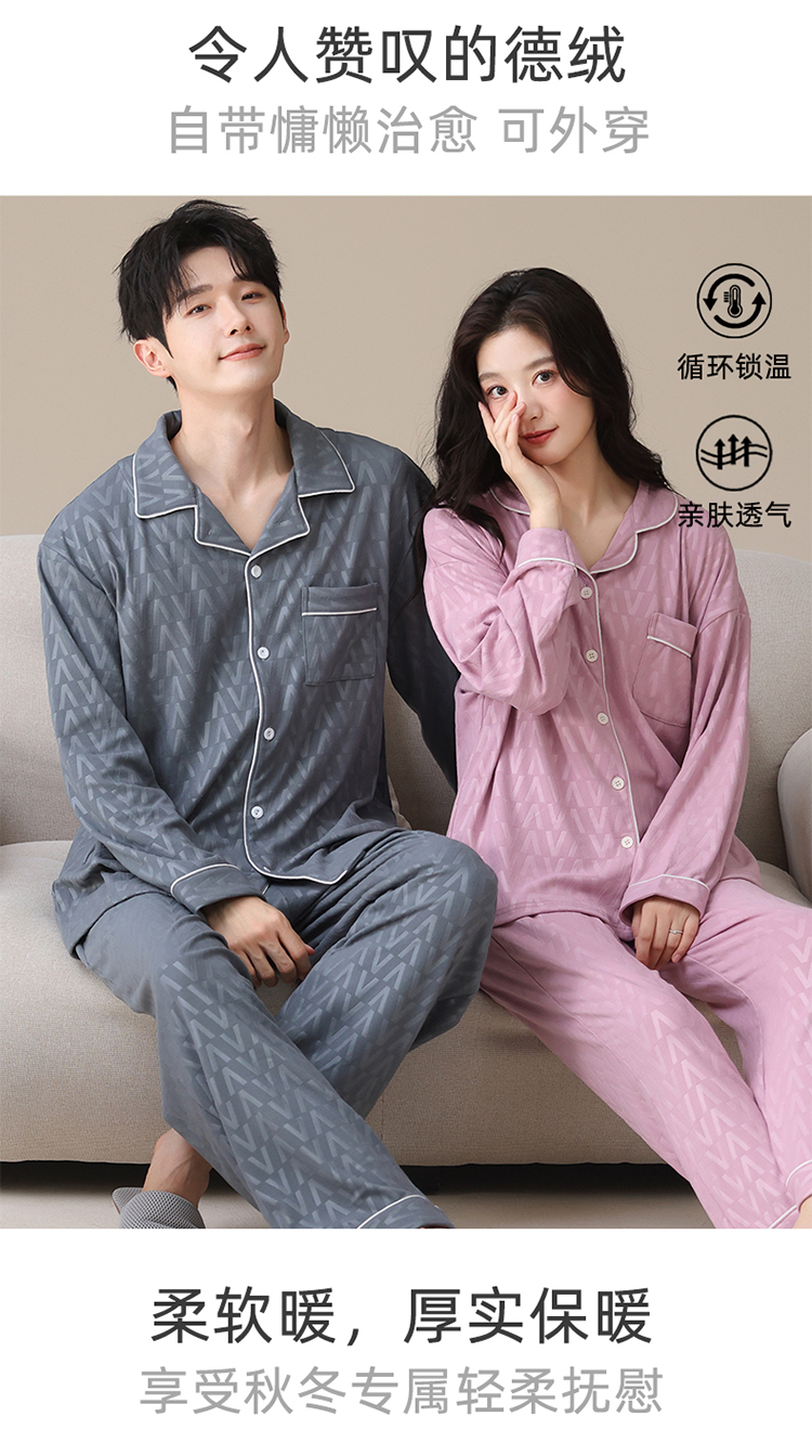【云优选】雪梵莱 男女款德绒开衫家居服套装 一触即暖,行走的高端汤泉!翻领开襟长袖上衣+长裤, 细腻柔顺 绵密亲肤 温暖加倍 宽松慵懒 体验宅家的幸福感