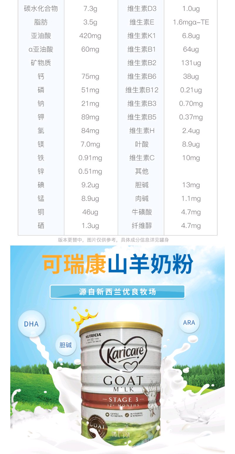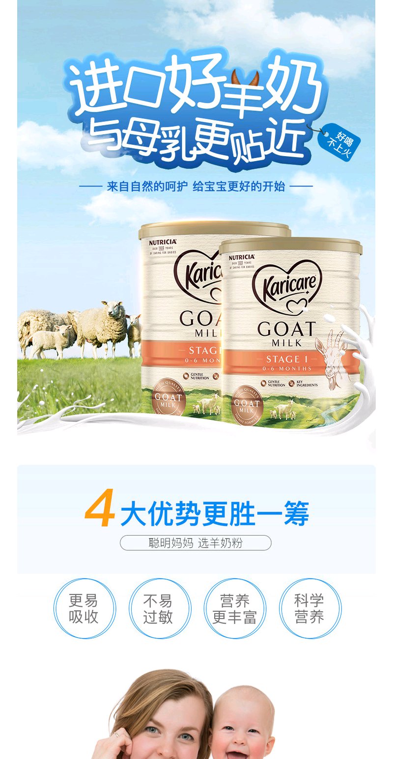 【澳洲直邮】羊奶 可瑞康Karicare幼儿配方羊奶粉900g3罐/6罐装