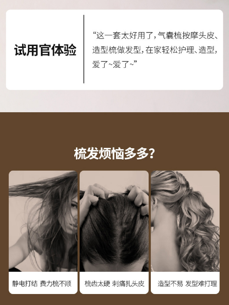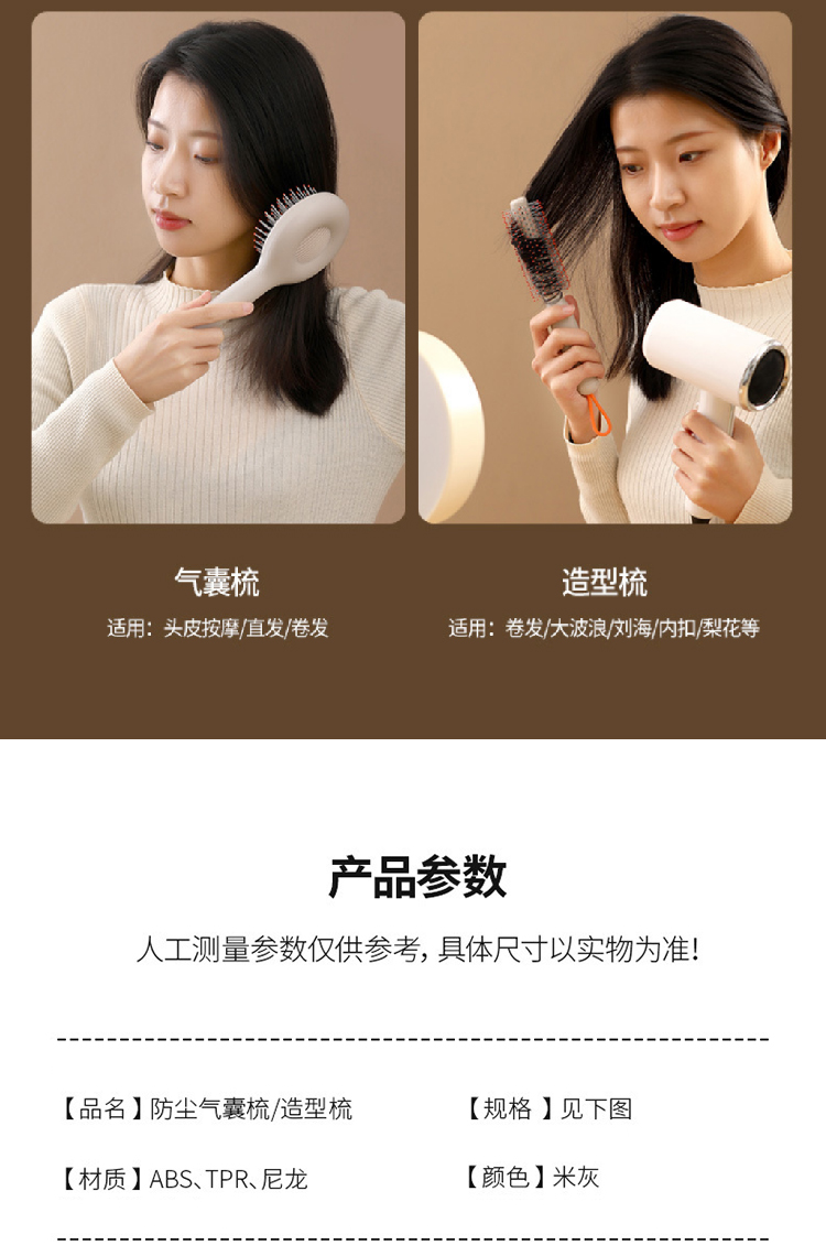【气囊按摩梳子】家用便携梳子长发卷发气垫梳 气囊按摩造型梳儿童女孩美发梳