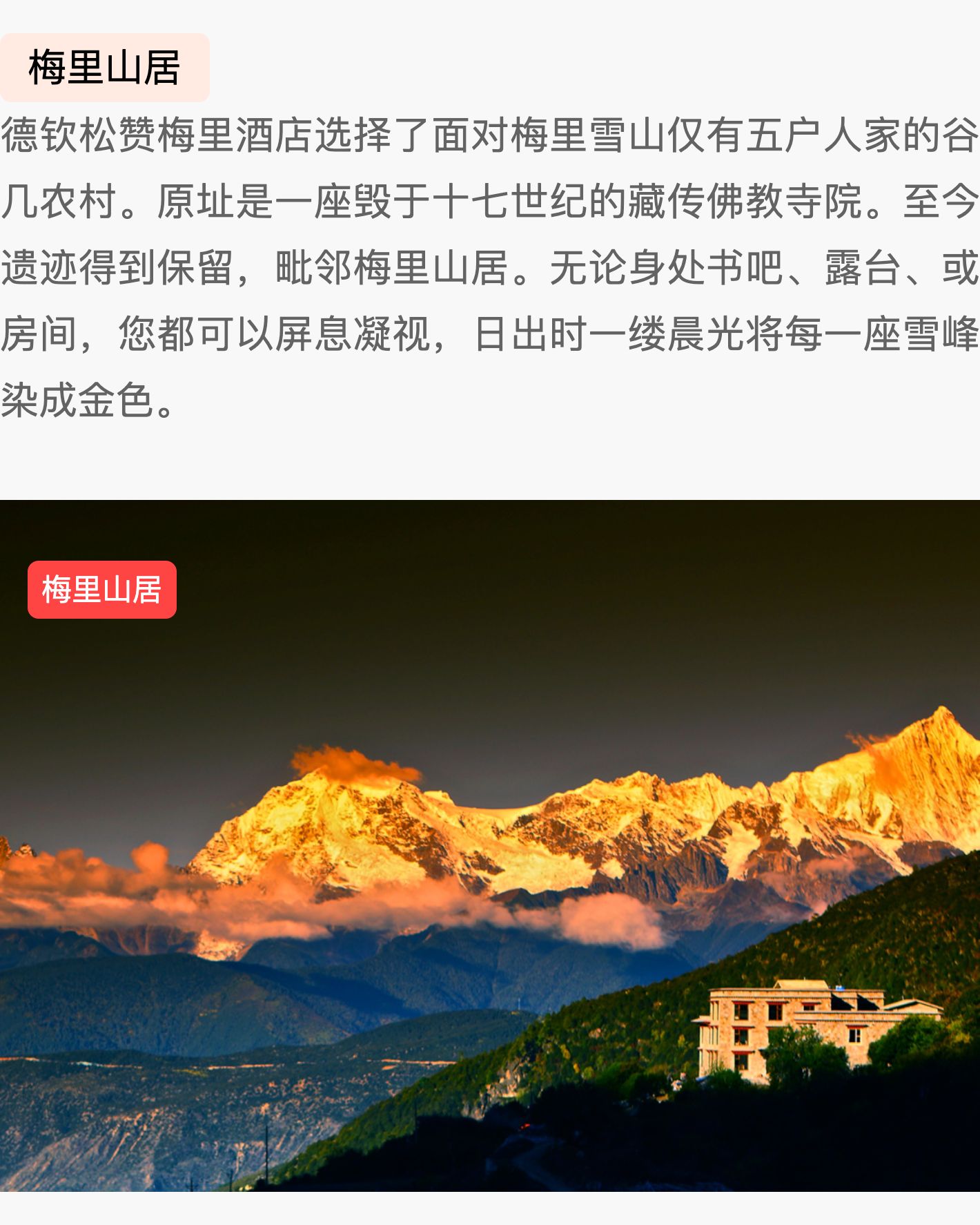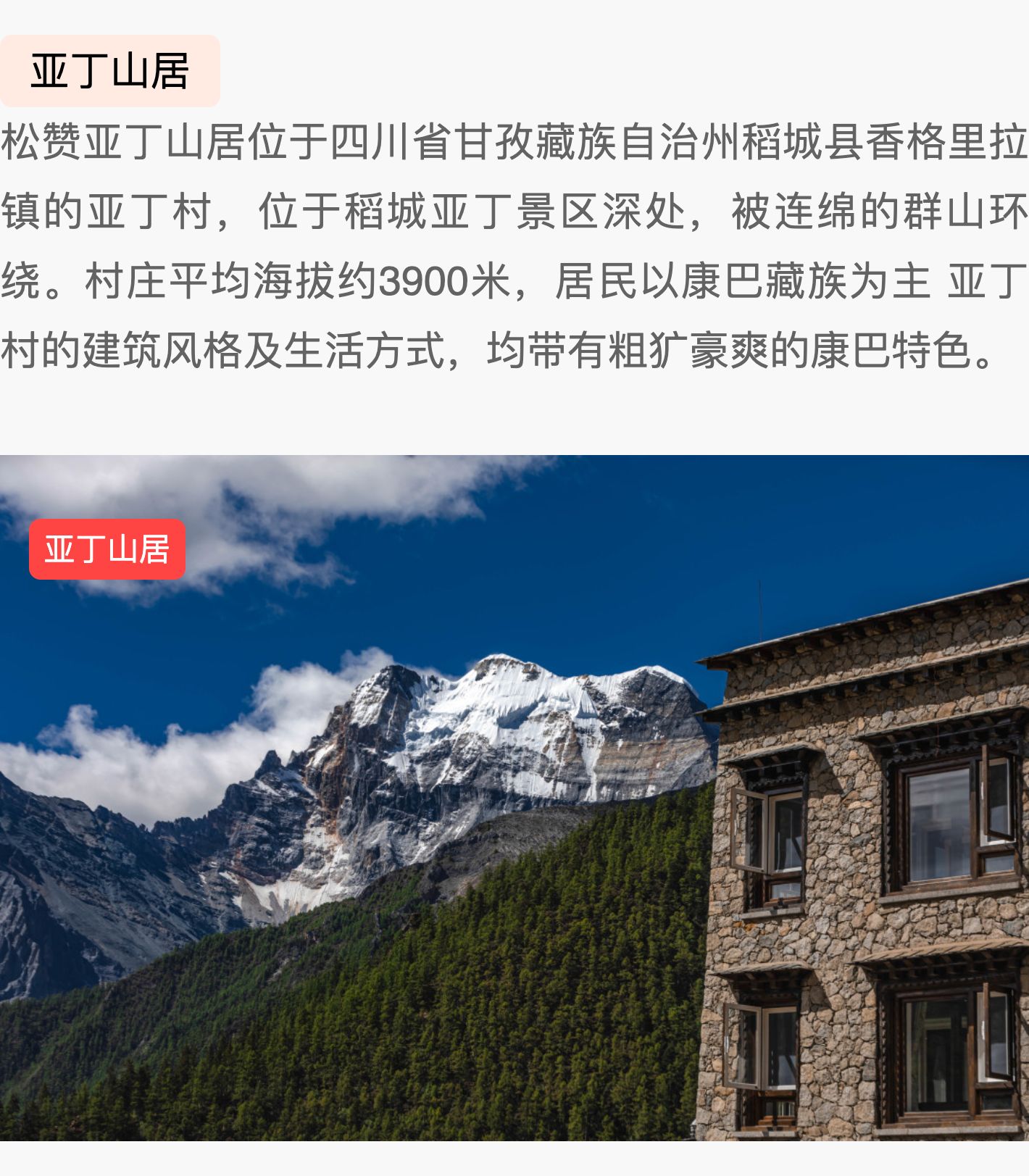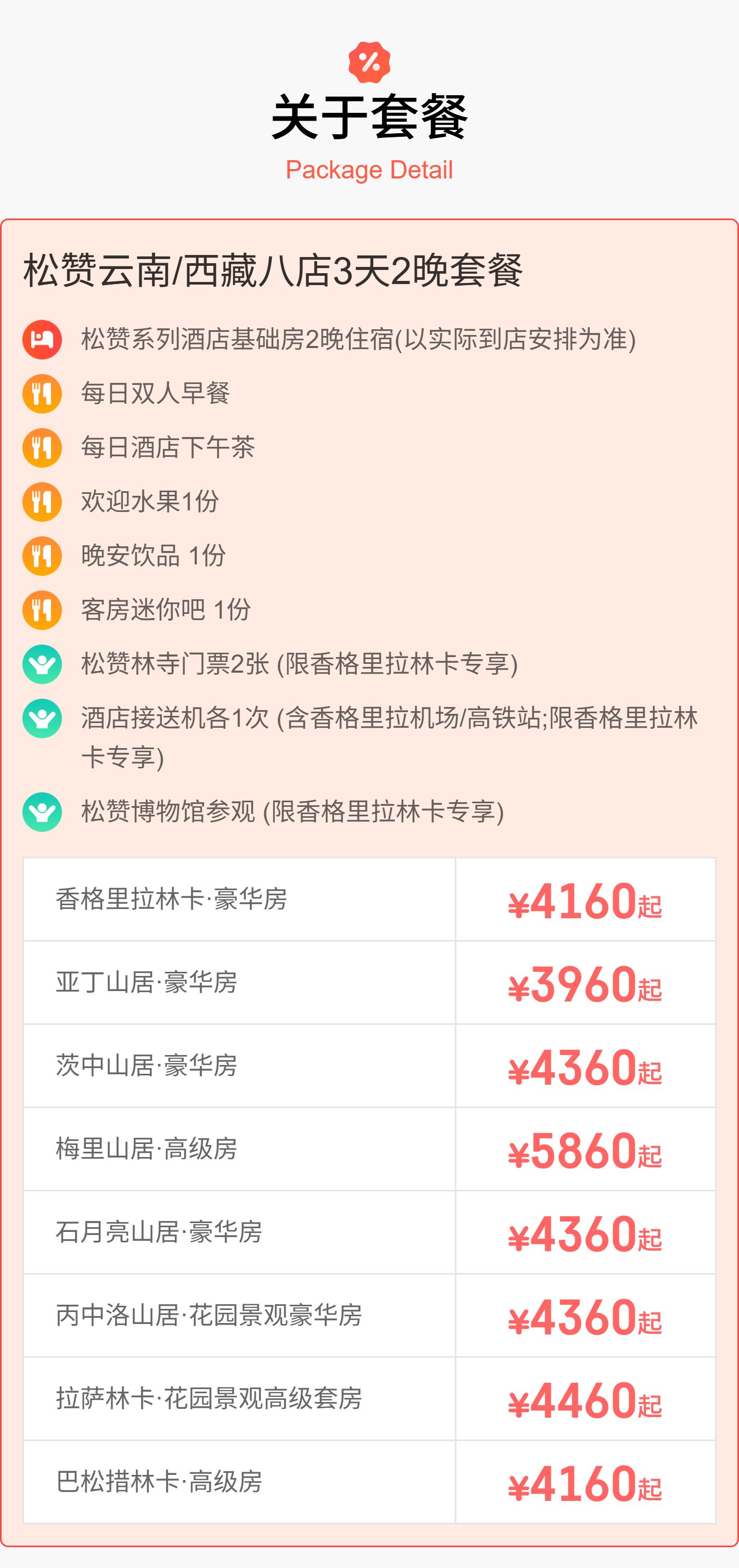 3天2晚【松赞香格里拉/亚丁/茨中/梅里/石月亮/丙中洛/拉萨/巴松措】含每日早餐、店内下午茶等,入住香格里拉林卡还赠接送机、松赞林寺门票等~