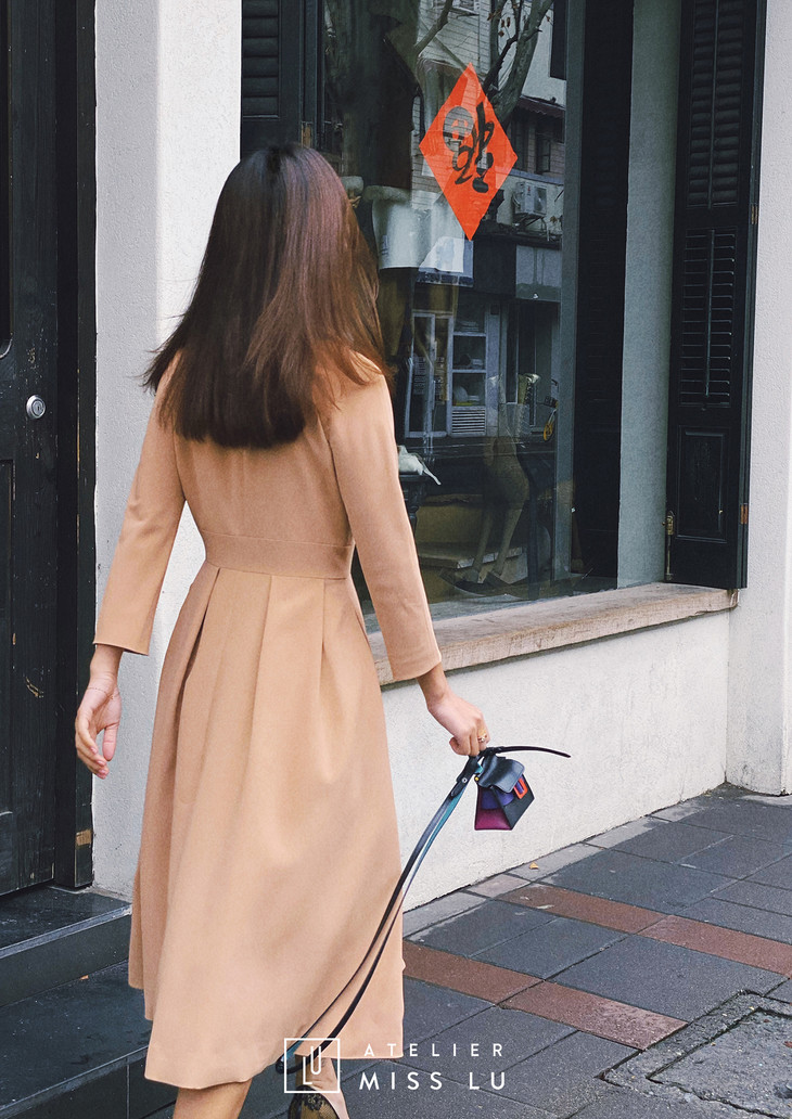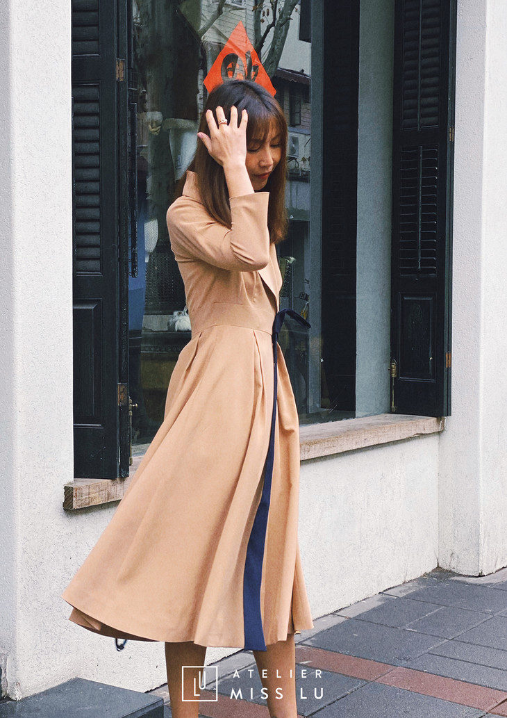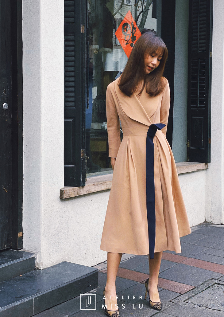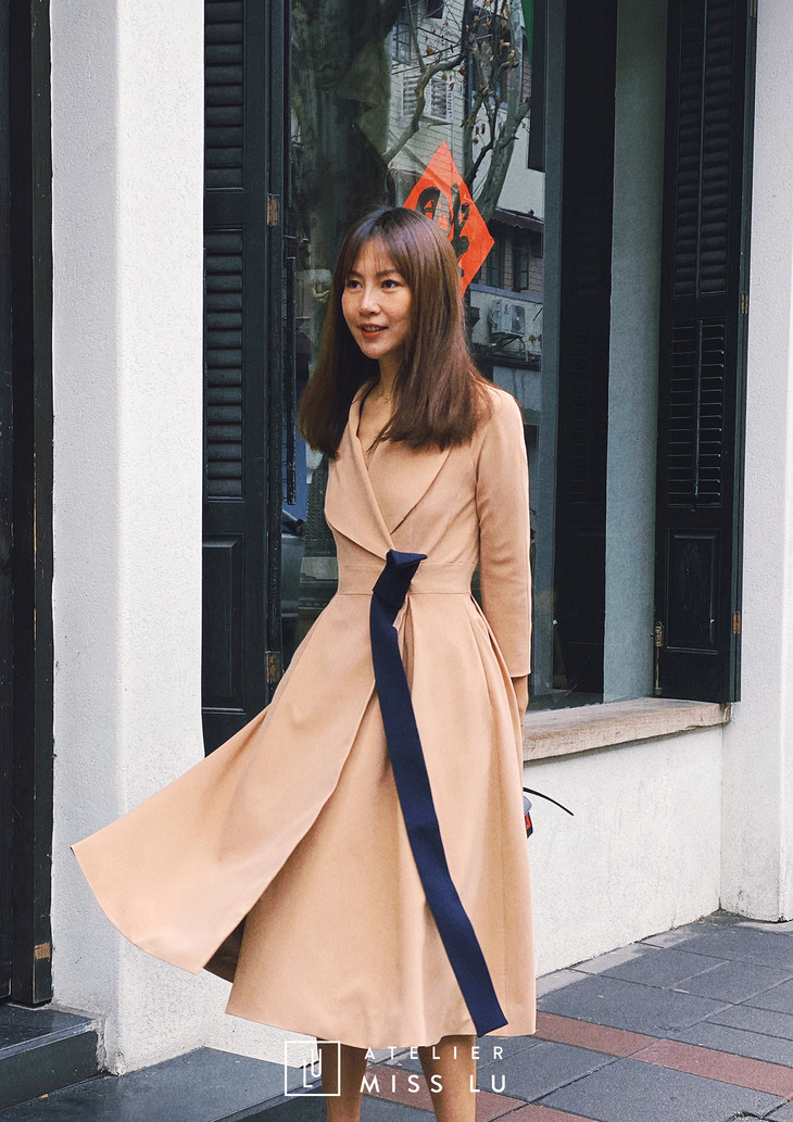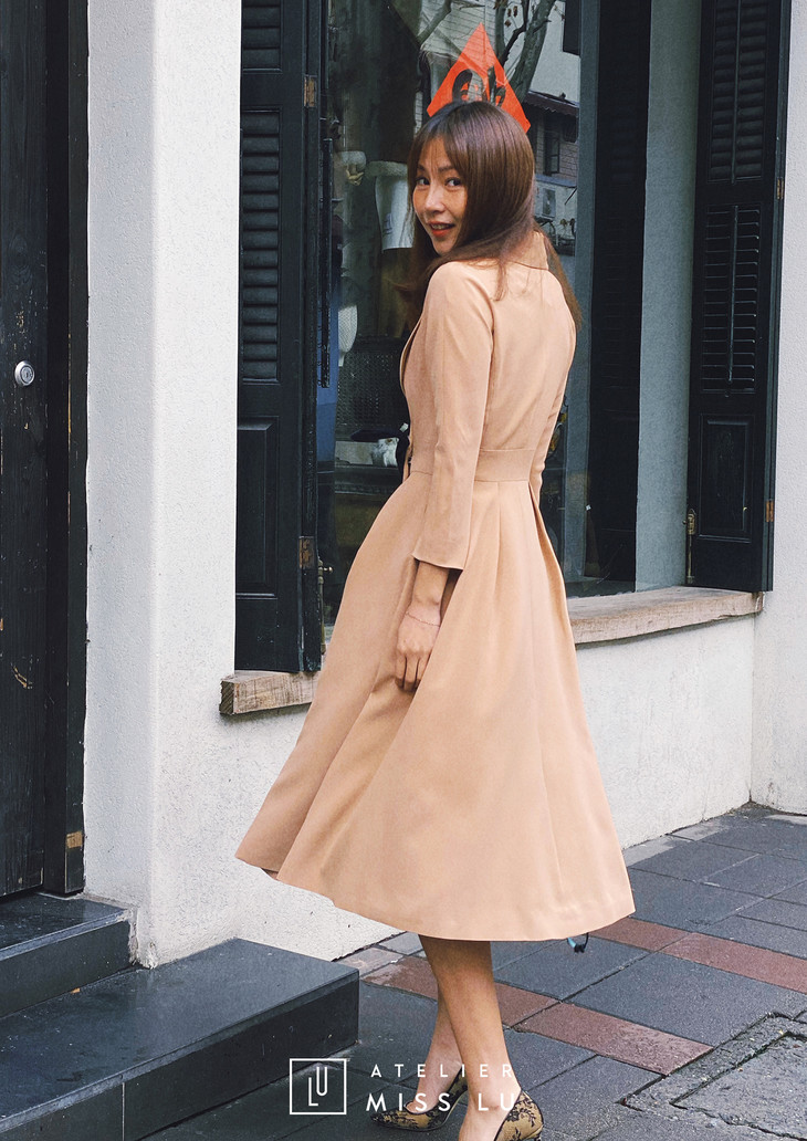 AtelierMissLu / Victoria-优雅杏色系带翻领外套/00142 63