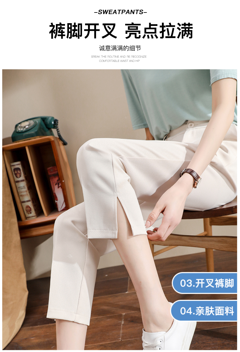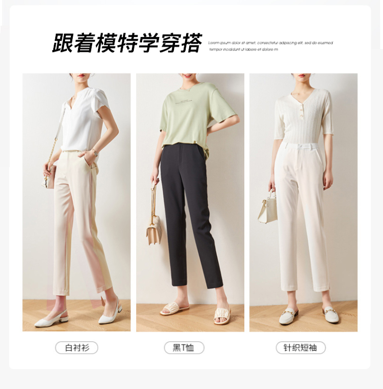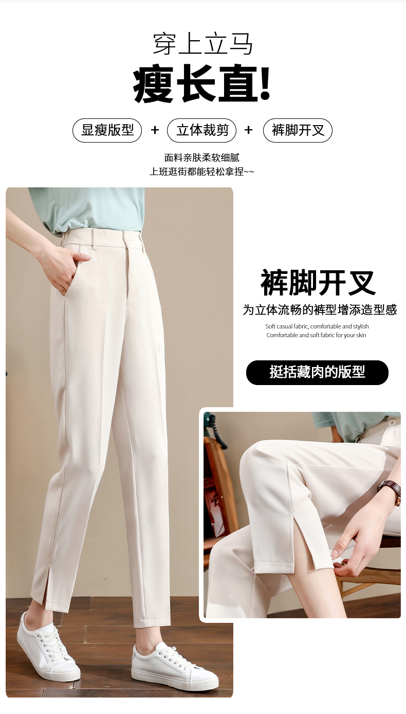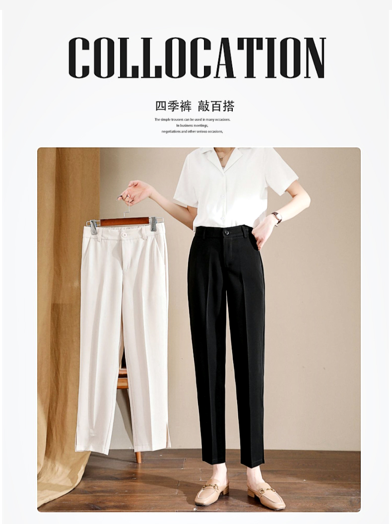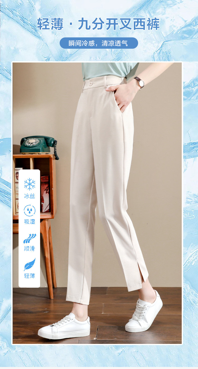 全新升级【九分烟管西裤】舒适透气滑溜溜冰冰凉,小个子也能穿适合各种腿型超显瘦!巨显高!中高腰松紧很遮肉,抗皱垂感面料,不褪色,不起球!