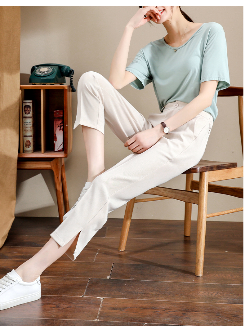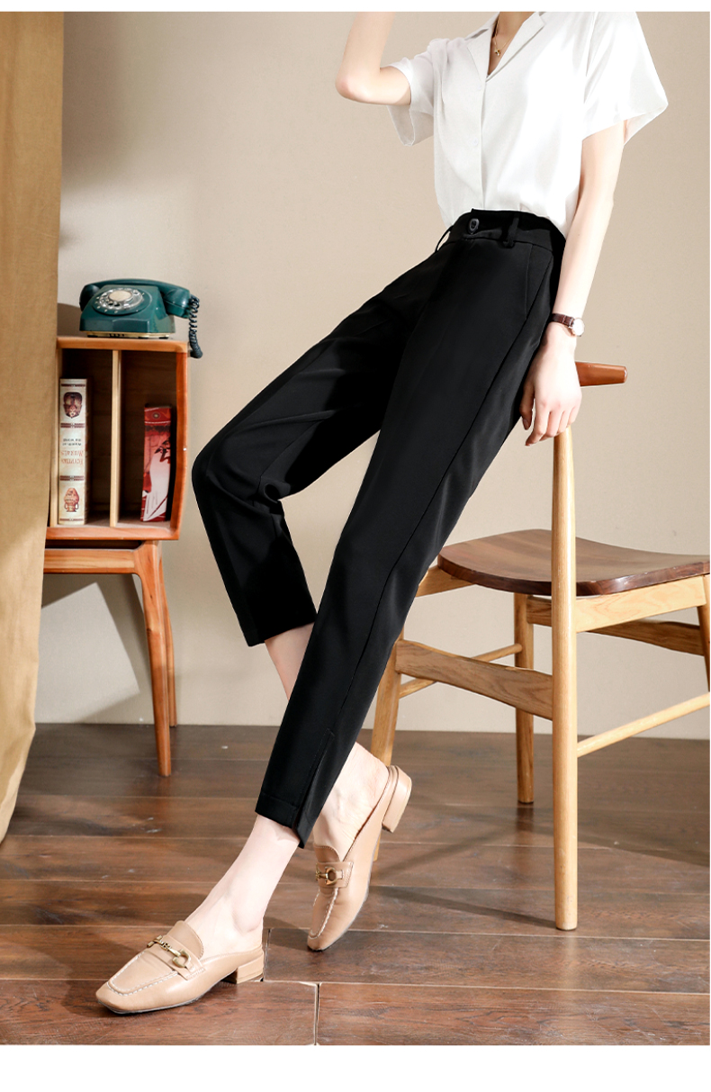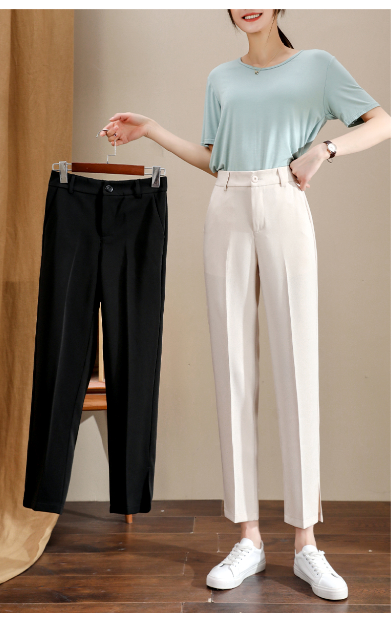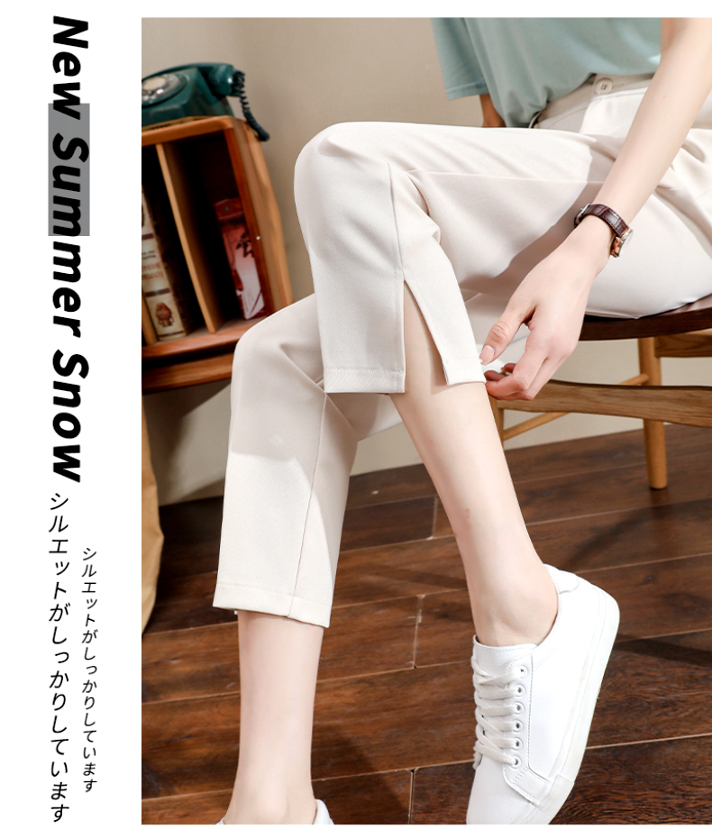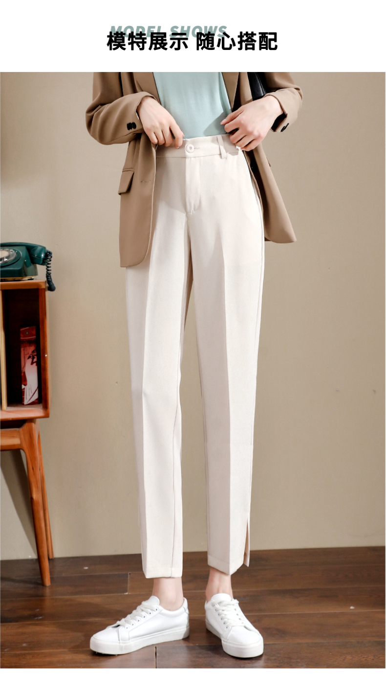 全新升级【九分烟管西裤】舒适透气滑溜溜冰冰凉,小个子也能穿适合各种腿型超显瘦!巨显高!中高腰松紧很遮肉,抗皱垂感面料,不褪色,不起球!