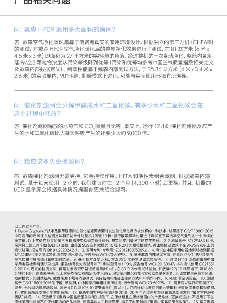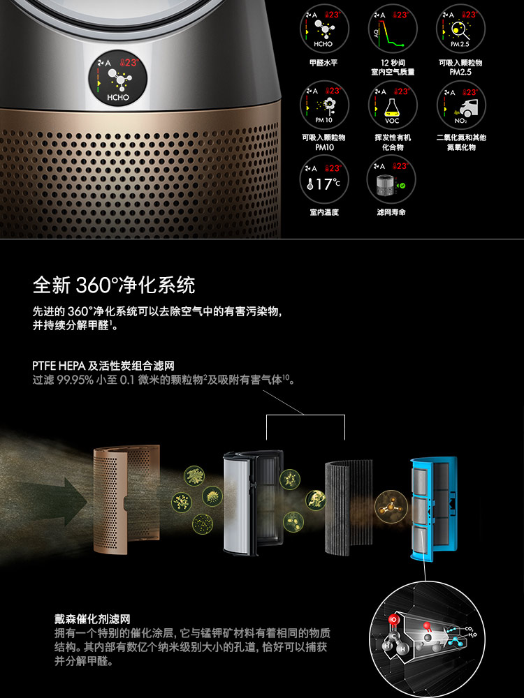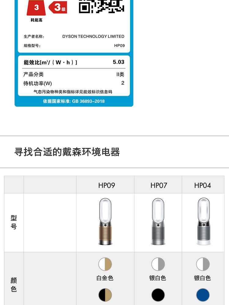 Dyson/戴森 空气净化风扇HP09 固态甲醛传感技术 整屋循环净化