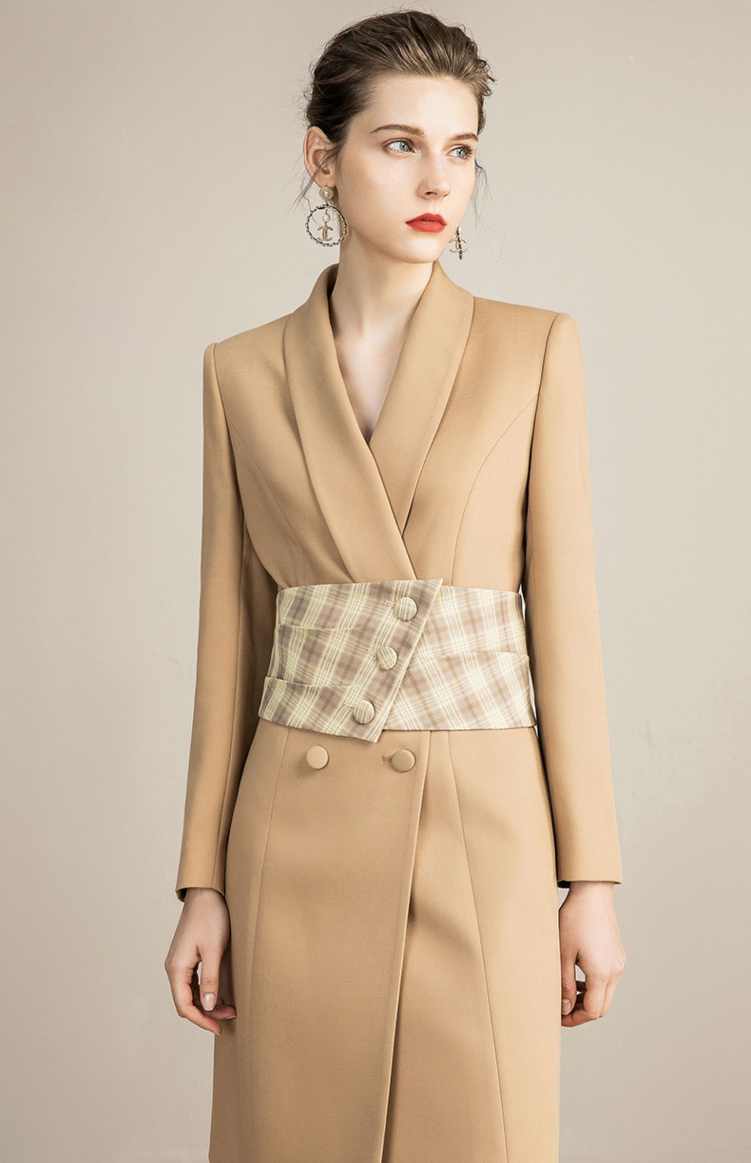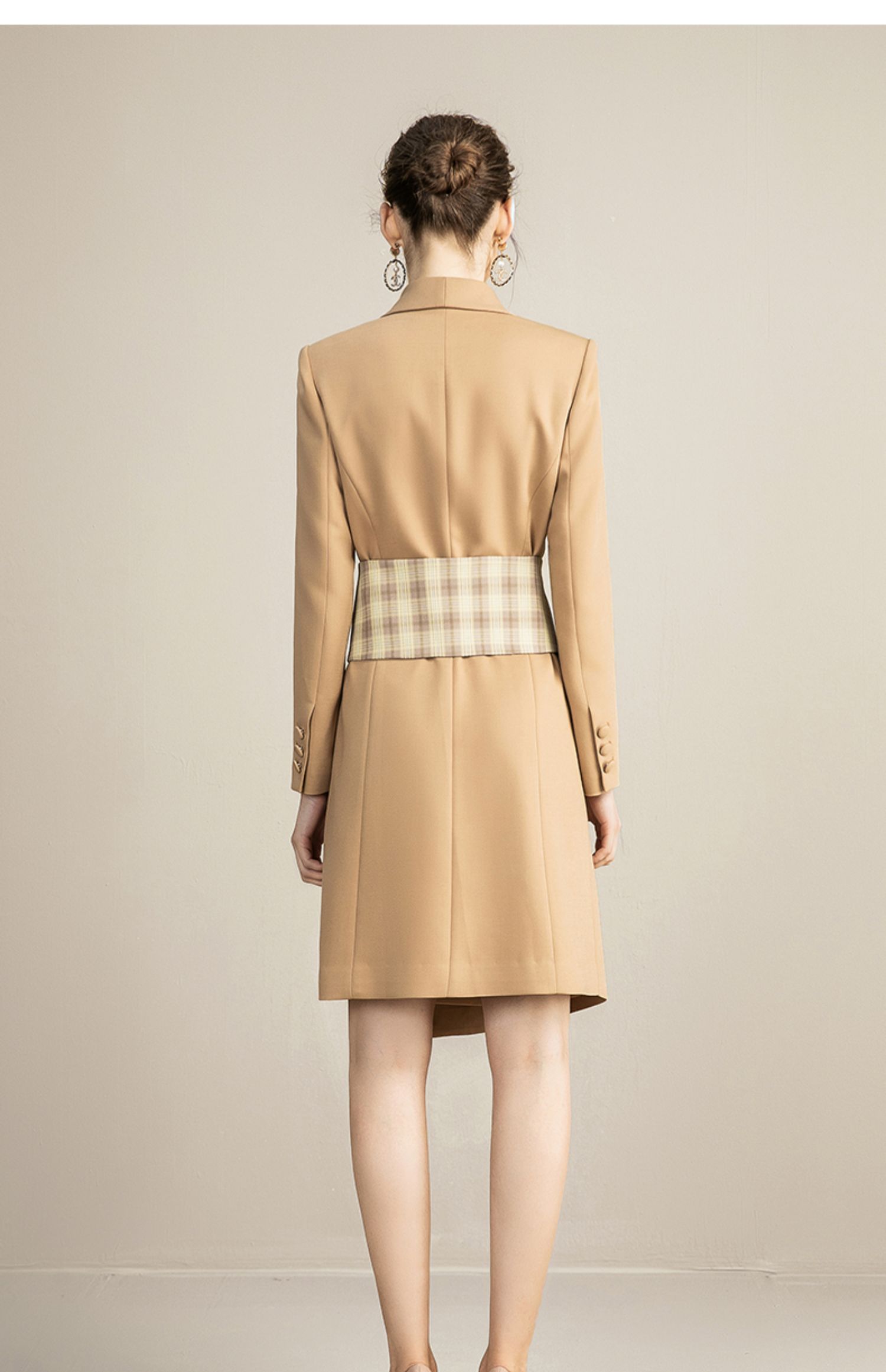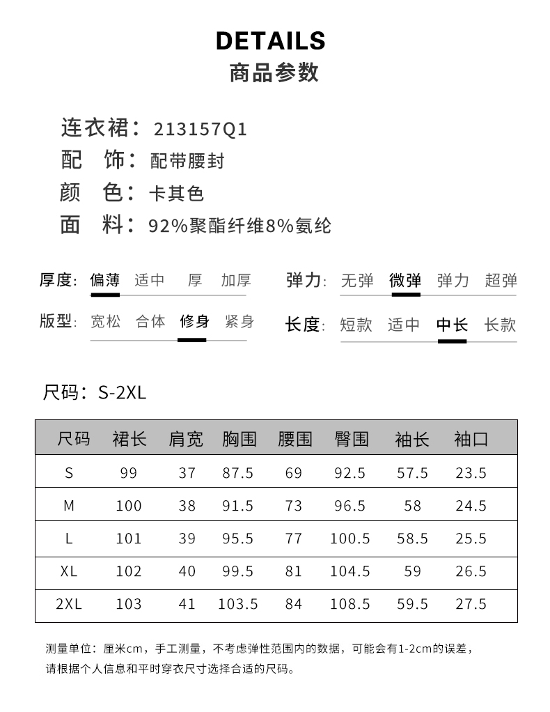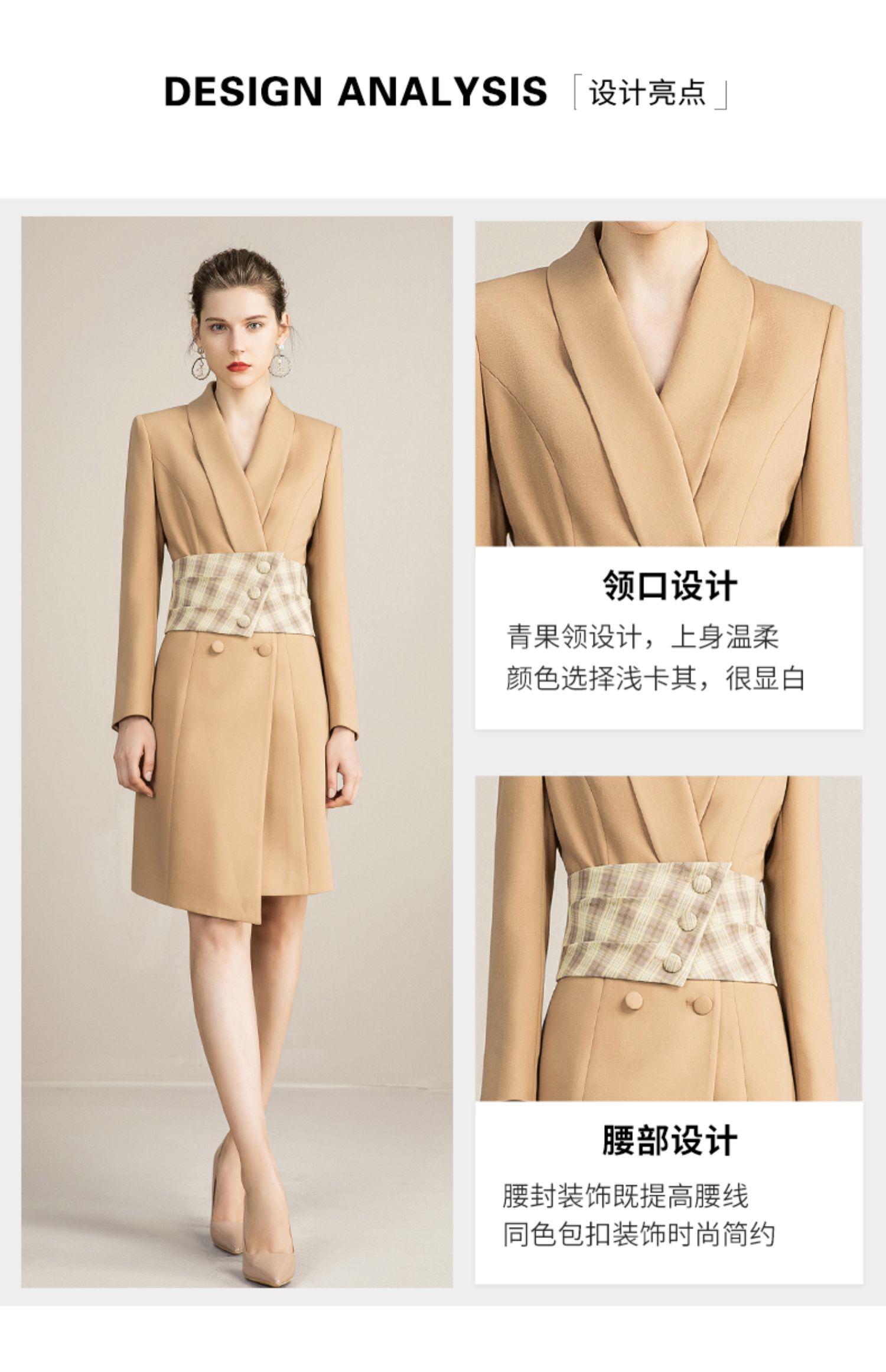 IWY/主持人同款显瘦职业连衣裙女长袖高端工作服时尚气质名媛卡其西服正装OL 213157Q1