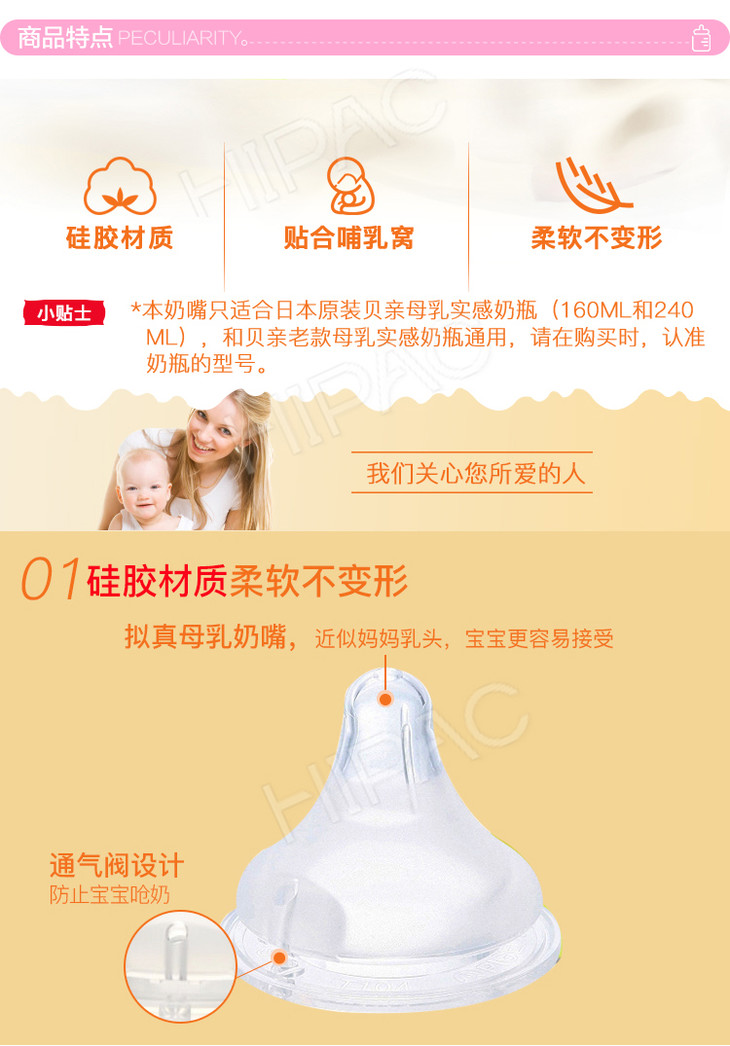 【一般贸易】日本贝亲Pigeon 宽口径硅胶奶嘴S号 1-3个月 2个装