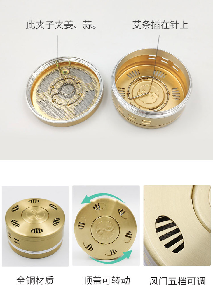正安国货铺 纯铜艾灸盒 隔烟防烫随身灸家用艾灸器具 包邮