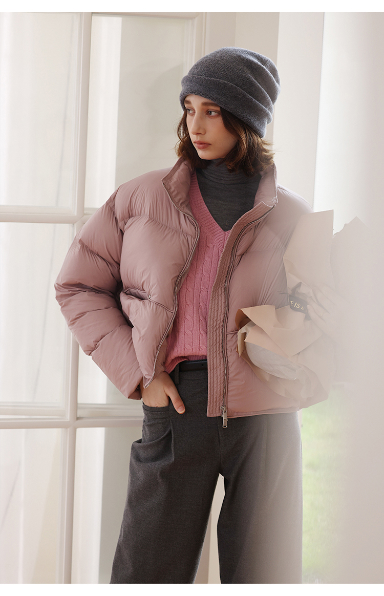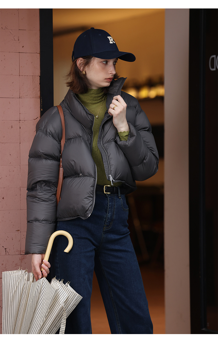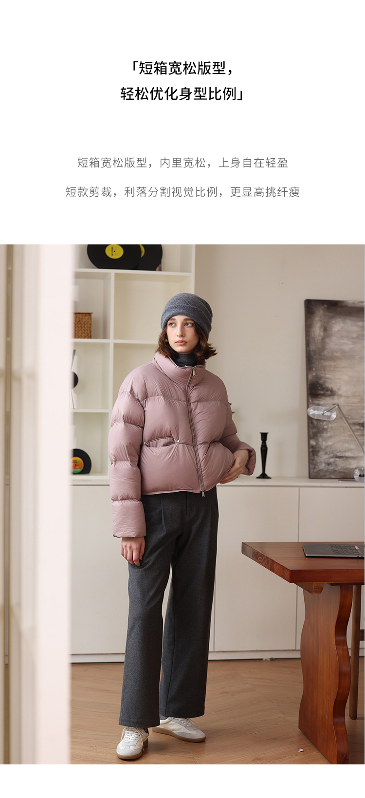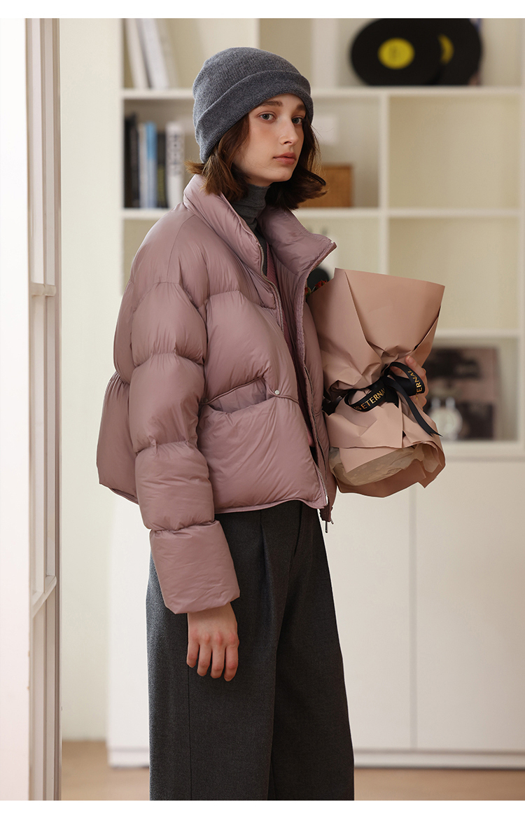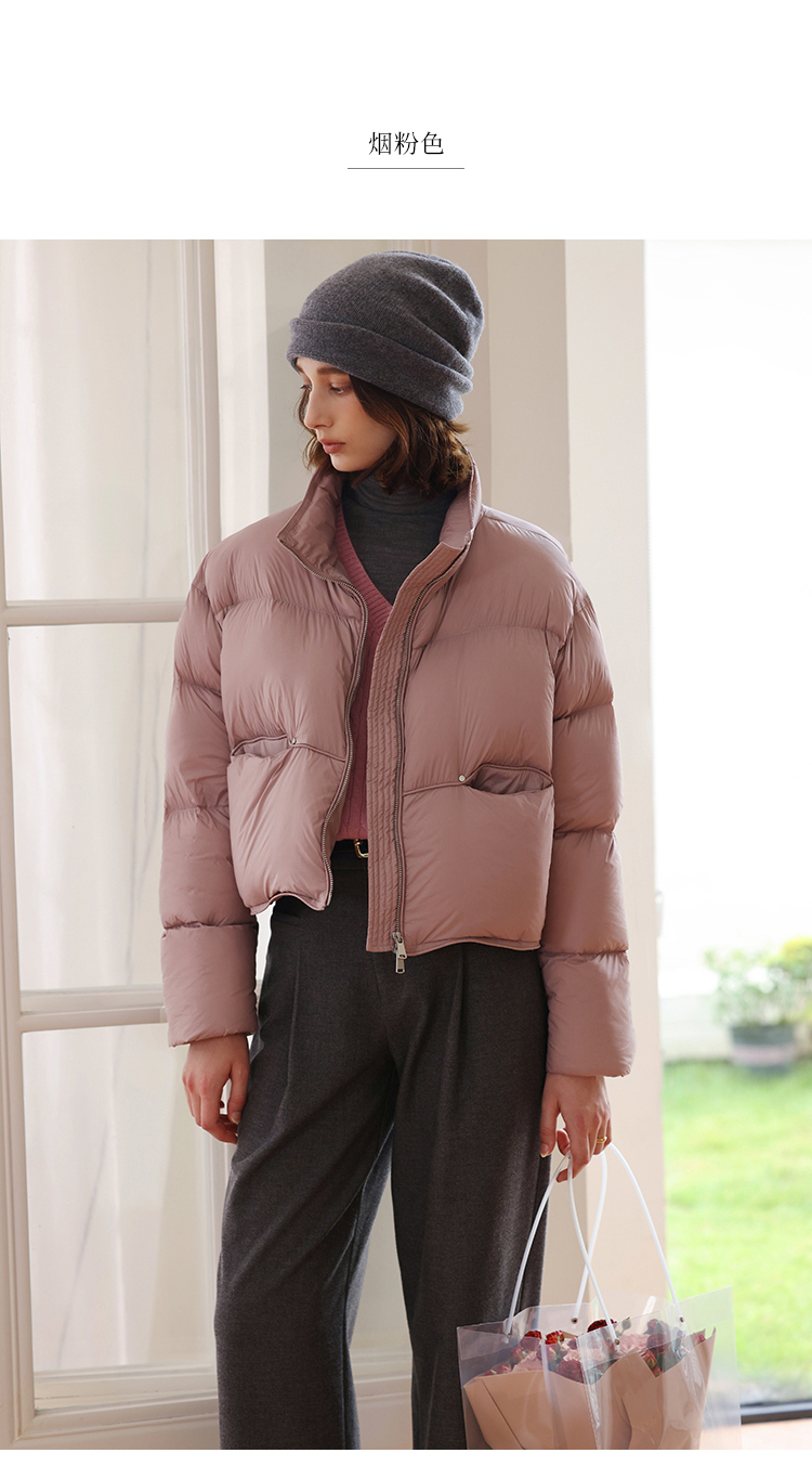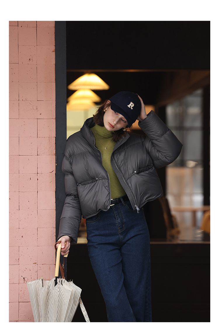 HeyDress小立领羽绒服女冬季宽松加厚保暖白鸭绒小个子短款面包服