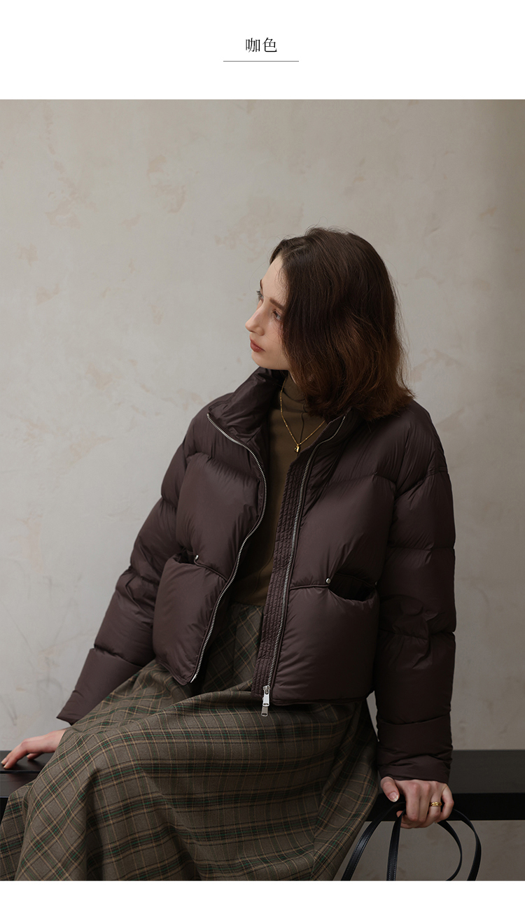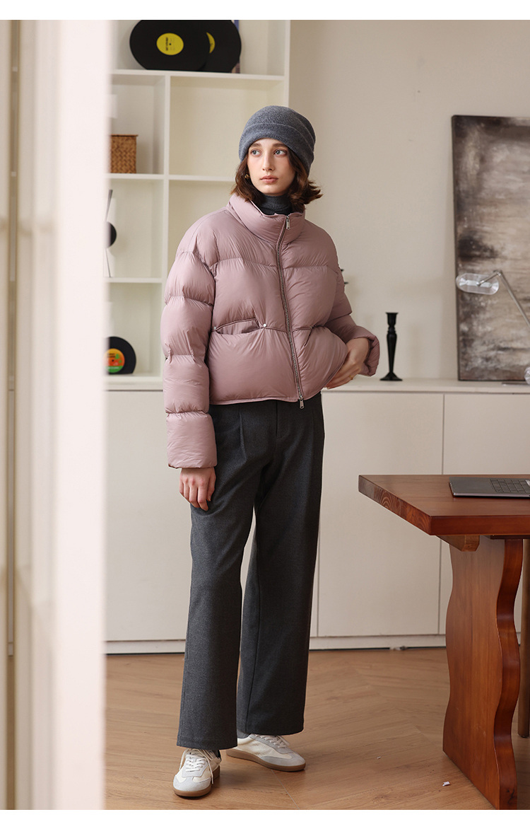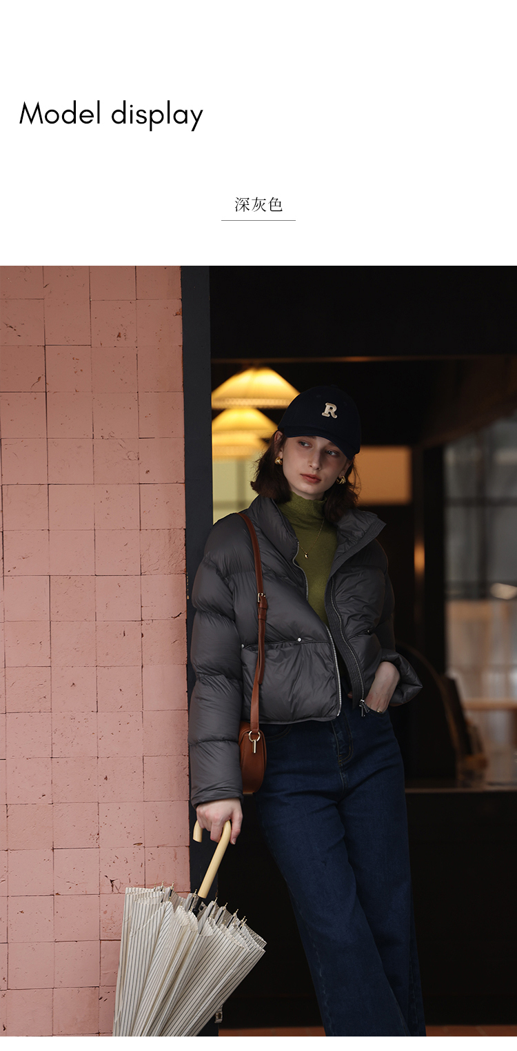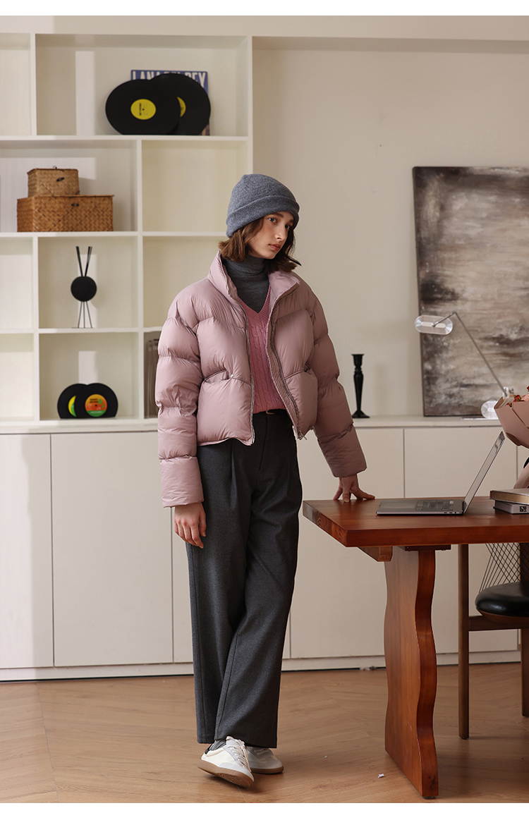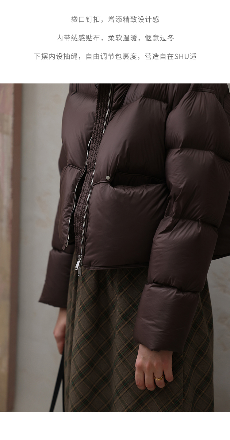 HeyDress小立领羽绒服女冬季宽松加厚保暖白鸭绒小个子短款面包服