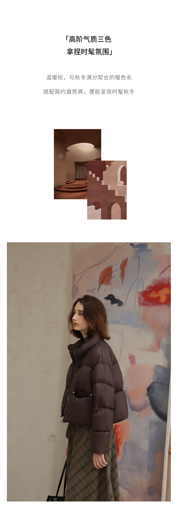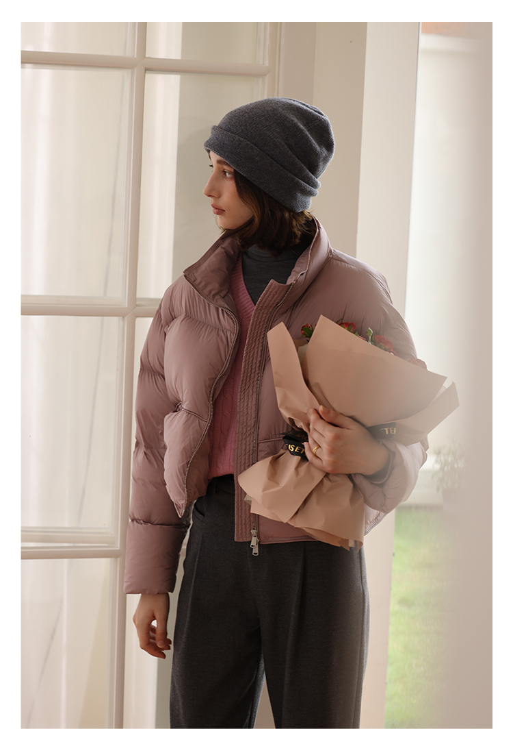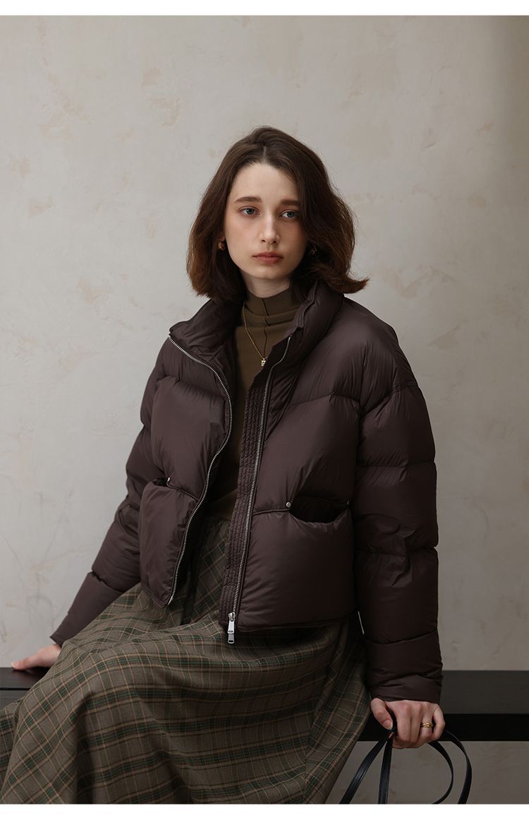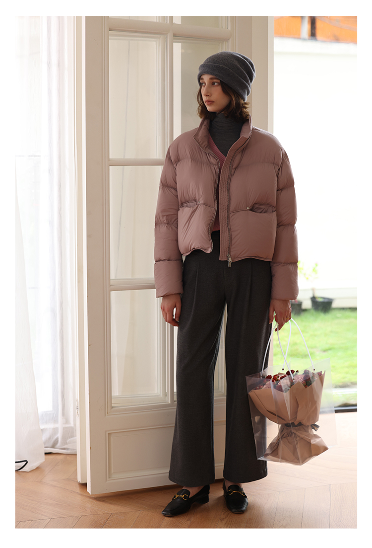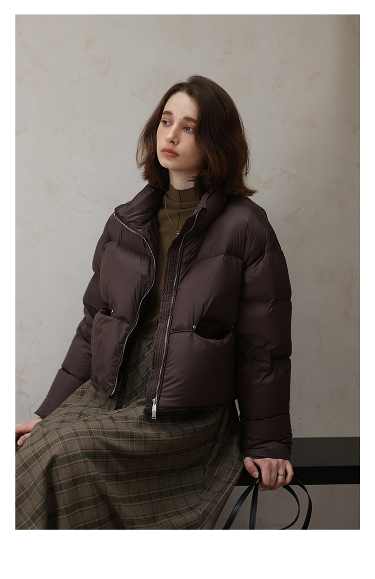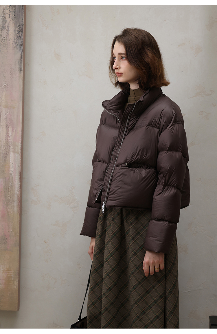 HeyDress小立领羽绒服女冬季宽松加厚保暖白鸭绒小个子短款面包服