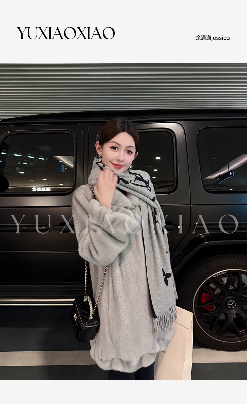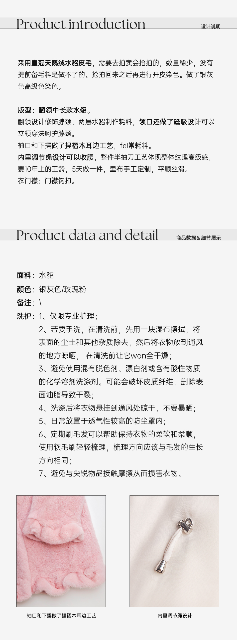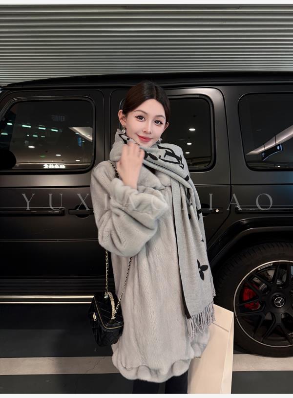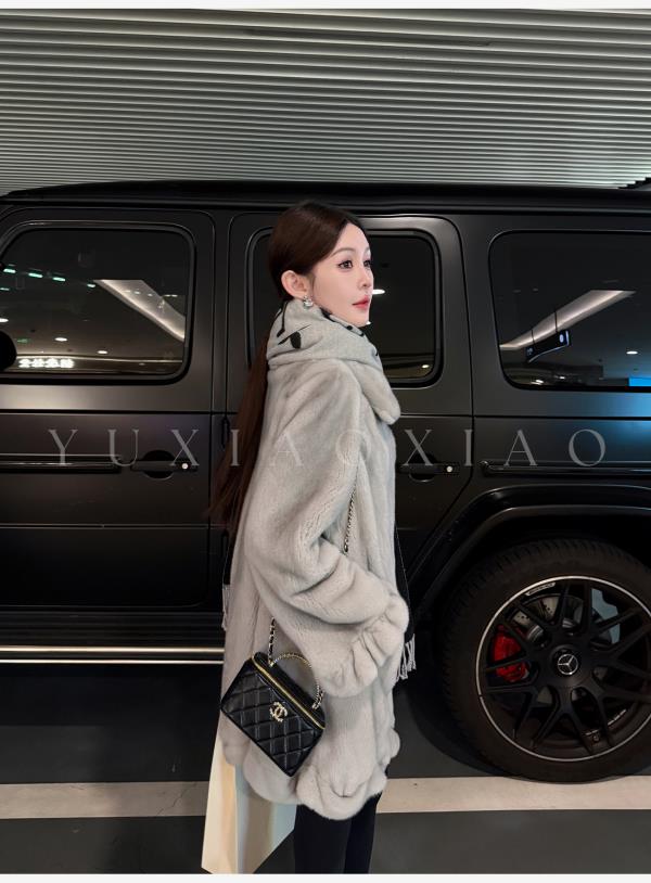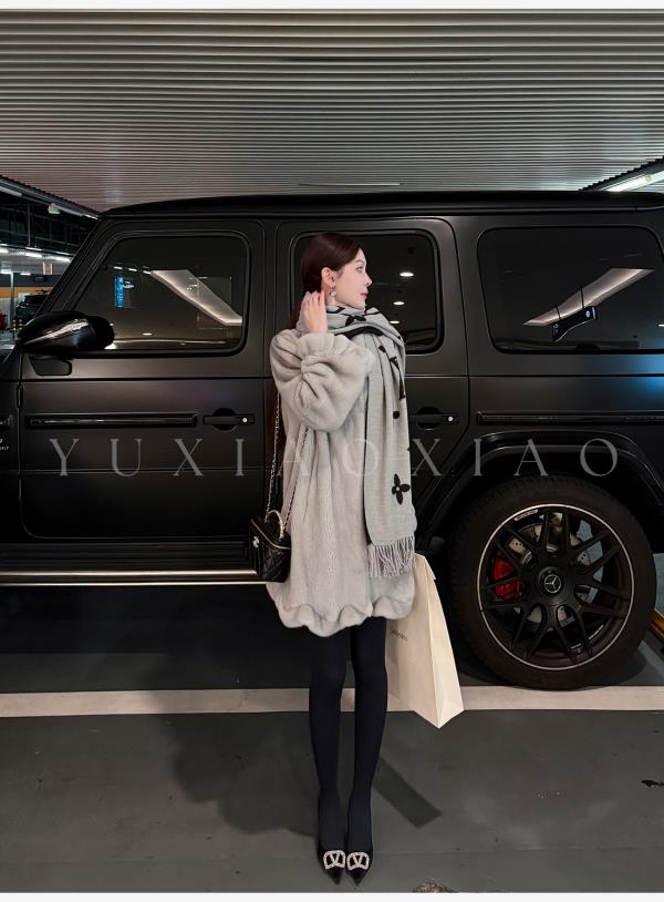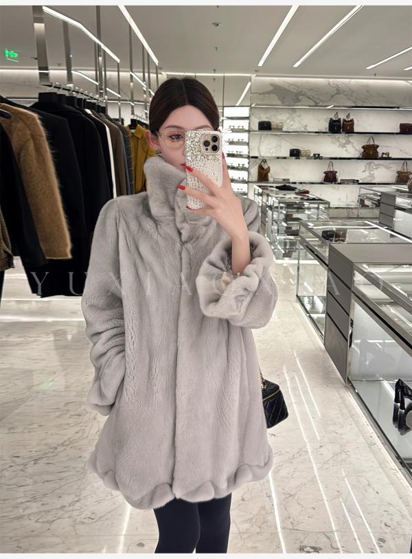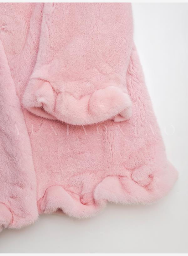 余潇潇【时光魅影】轻奢气质磁吸领半抽刀工艺翻领中长款水貂皮草