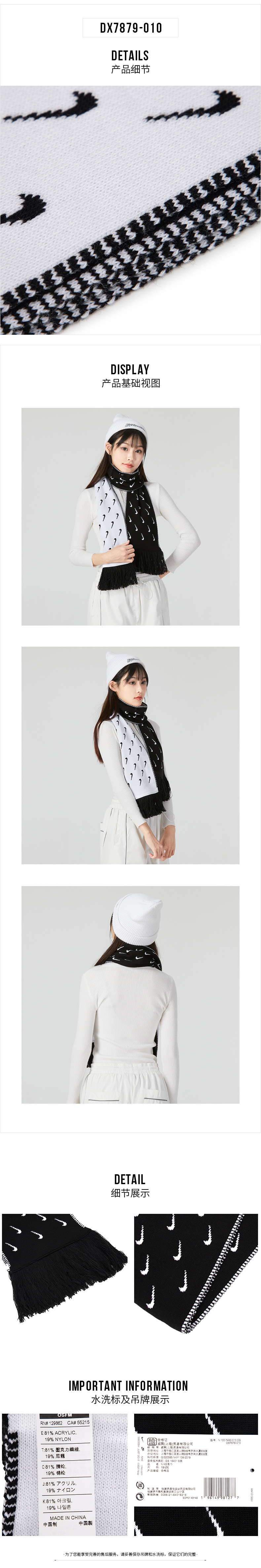 耐克(Nike)围巾男女同款冬季款保暖装备双面可用柔软舒适潮流时尚情侣款围脖 DX7879