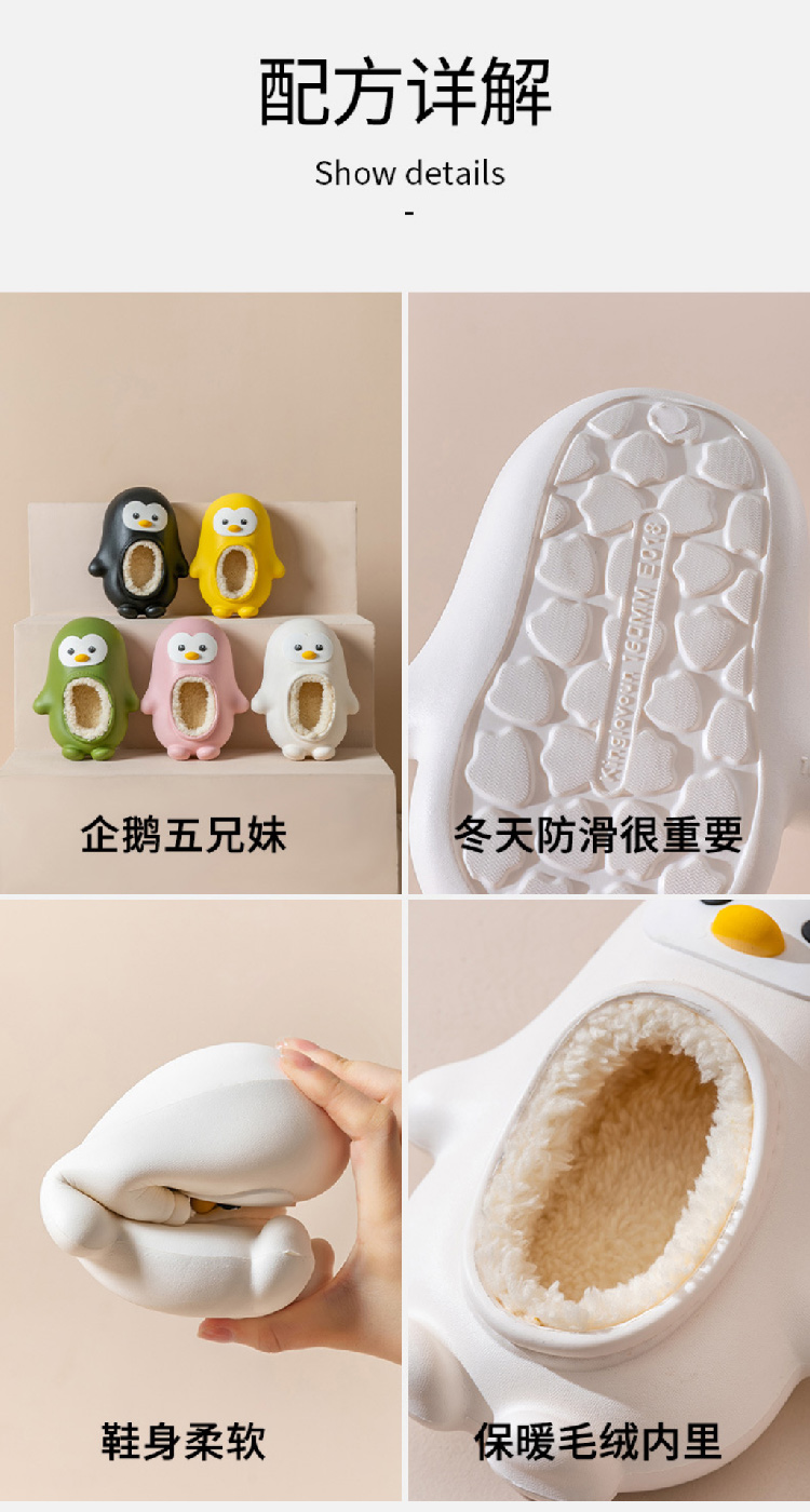 【儿童企鹅棉鞋】2024秋冬季可爱卡通男童女童 幼儿宝宝室内家居防水保暖棉鞋