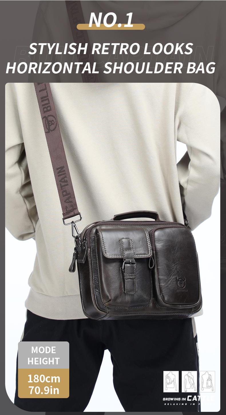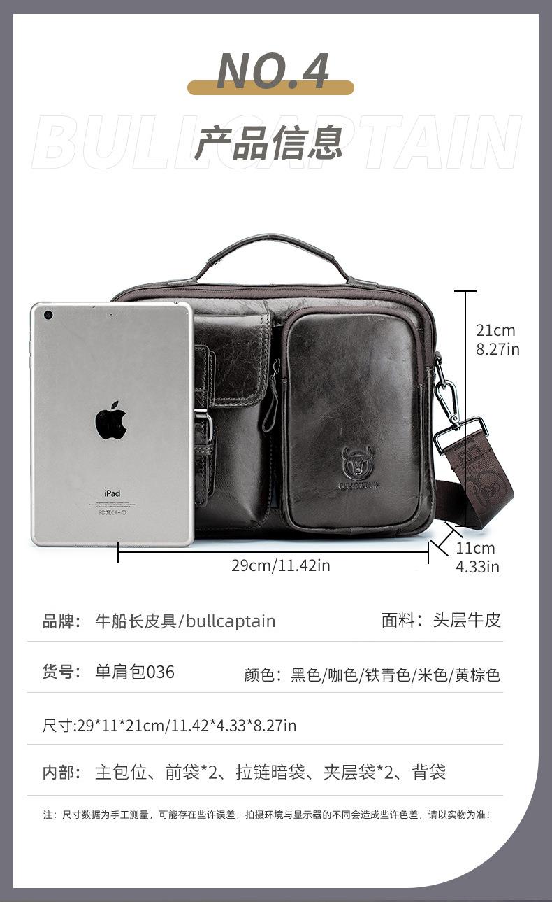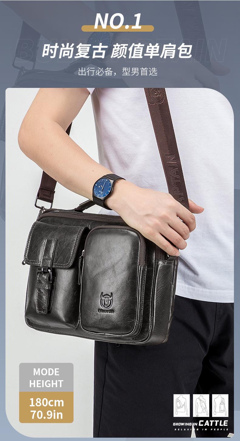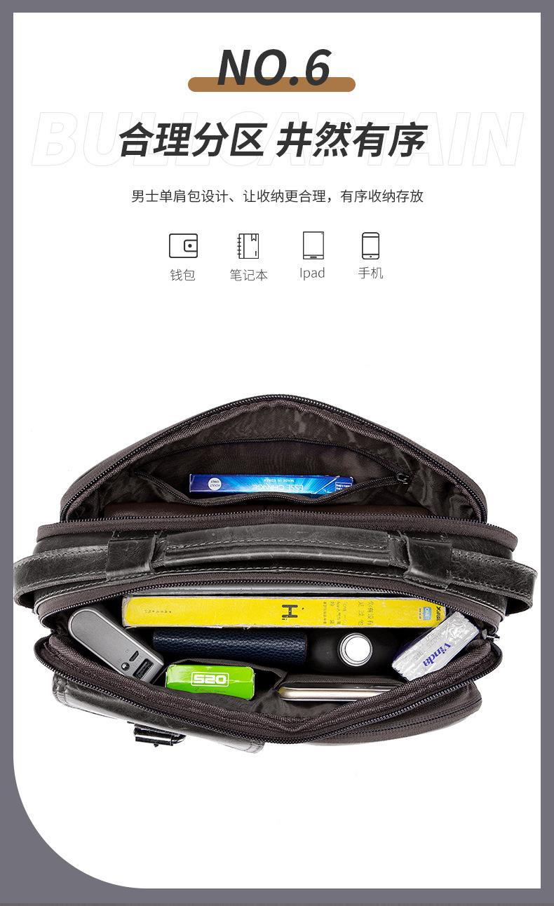 牛船长(BULLCAPTAIN)男士真皮单肩斜挎复古头层牛皮包