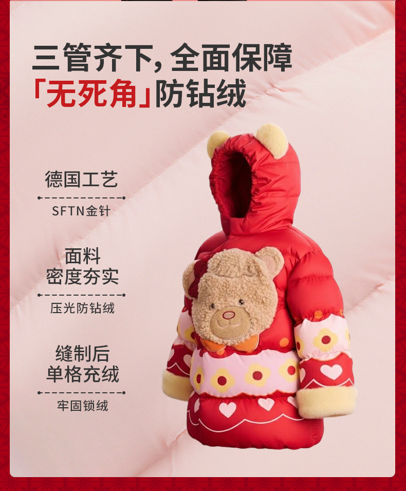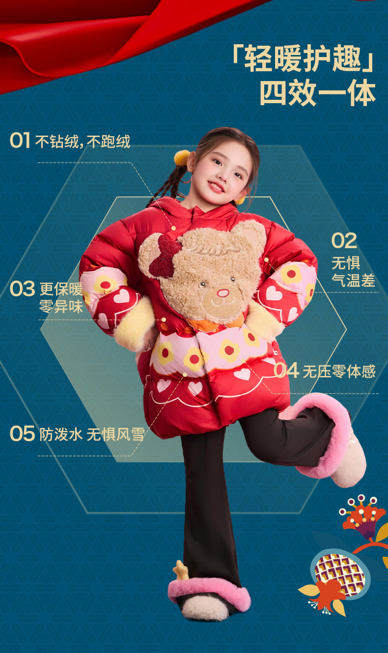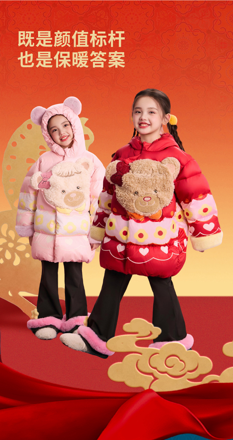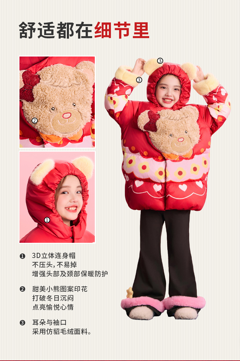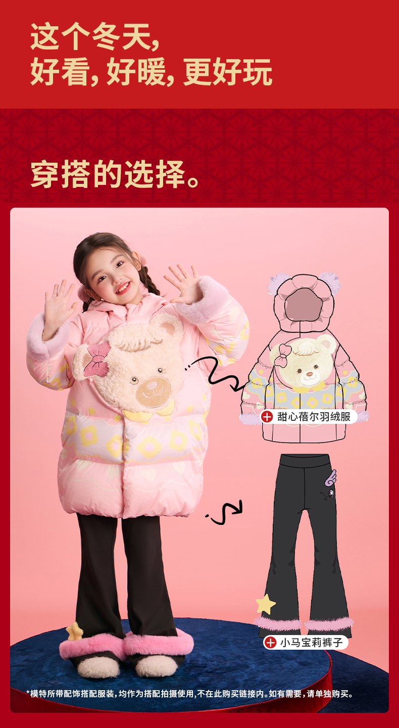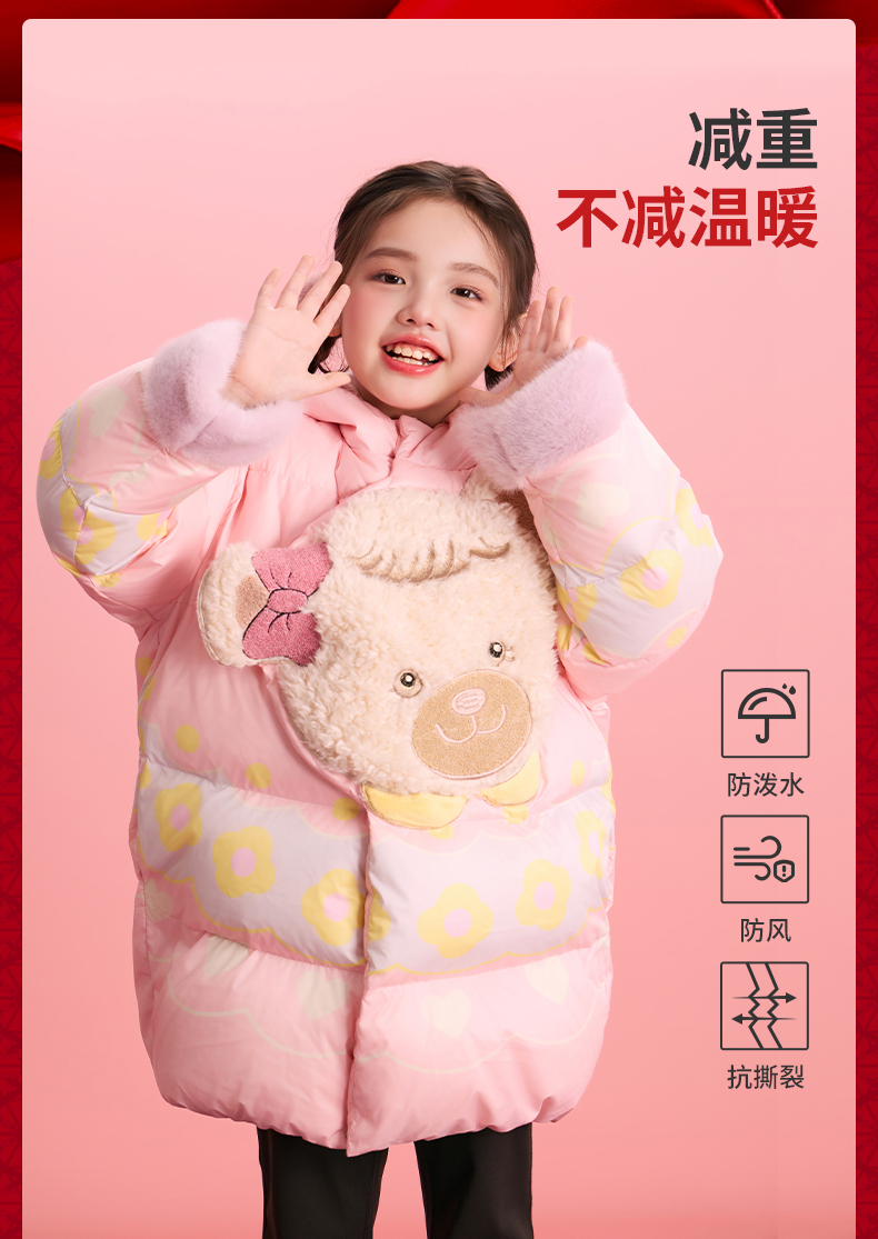 年衣童装中长款羽绒服女孩冬装新款可爱保暖加厚甜心蓓尔羽绒服