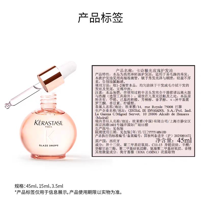 欧莱雅卡诗釉光玫瑰精油 45ml/瓶