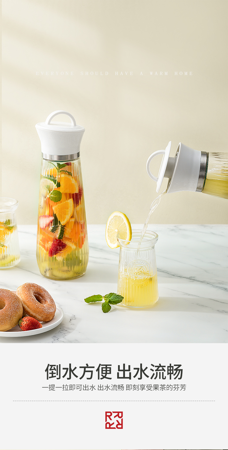 这款冷水壶不仅可以为你带来冰爽的口感,更能让你一眼看见冰块在其中悠然舞动,仿佛置身于清澈的冰川。同时,其花式随心萃取功能,可以让你根据个人口味随意调配各种果味、茶叶、花草,打造属于自己的清凉饮品。