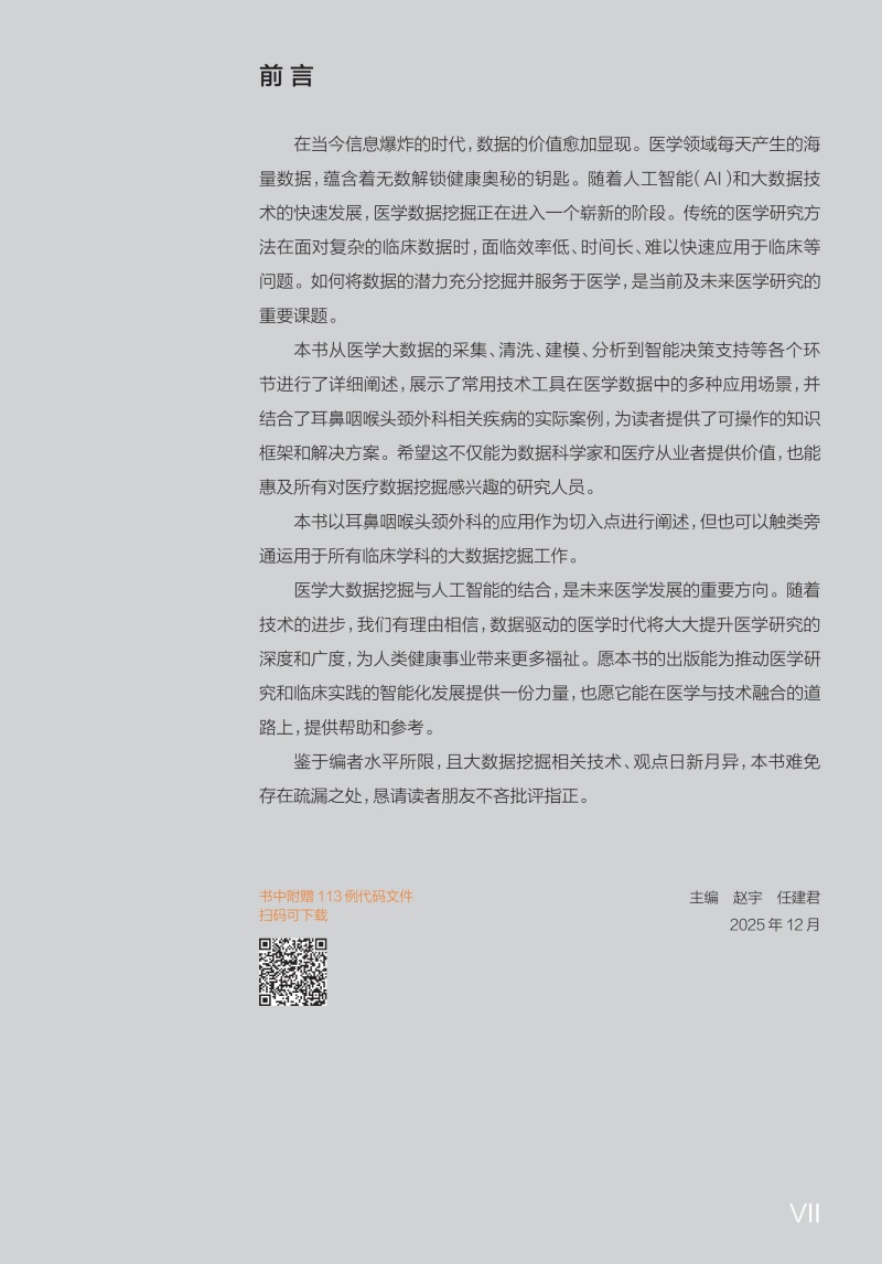 耳鼻咽喉头颈外科大数据挖掘 赵宇 任建君 主要围绕如何基于大型临床及基因数据库、自然人队列、专病队列等数据 人民卫生出版社