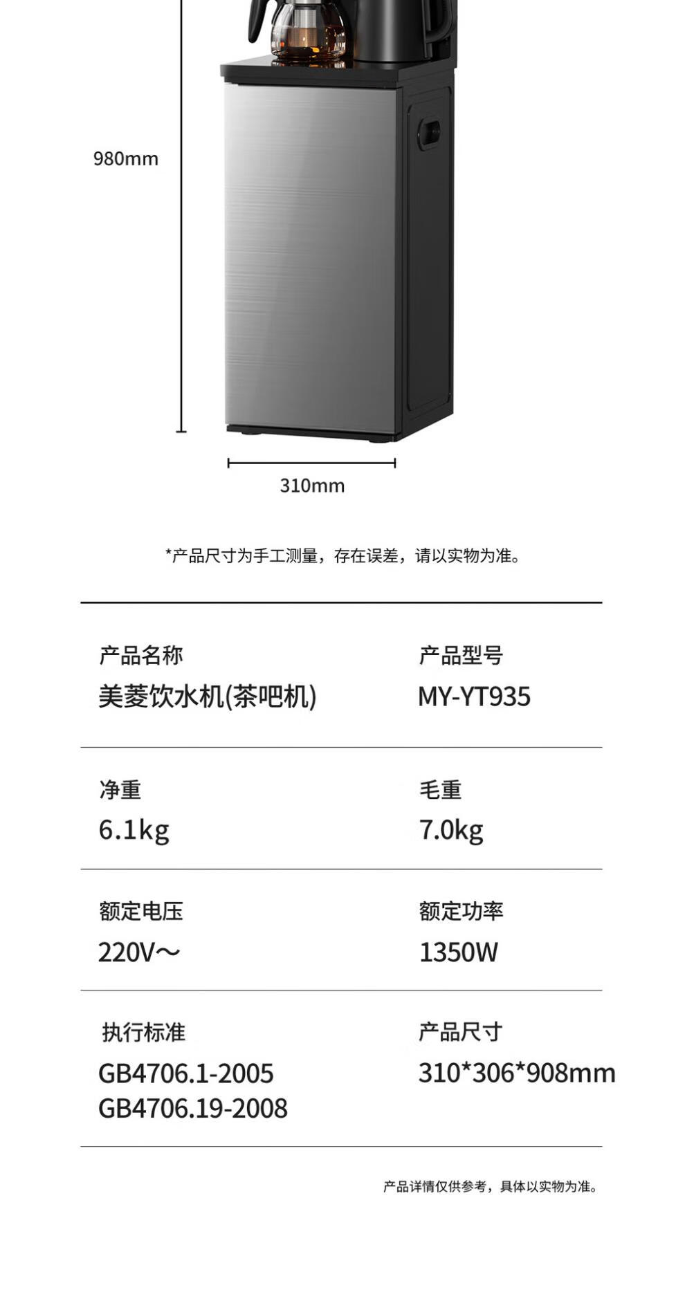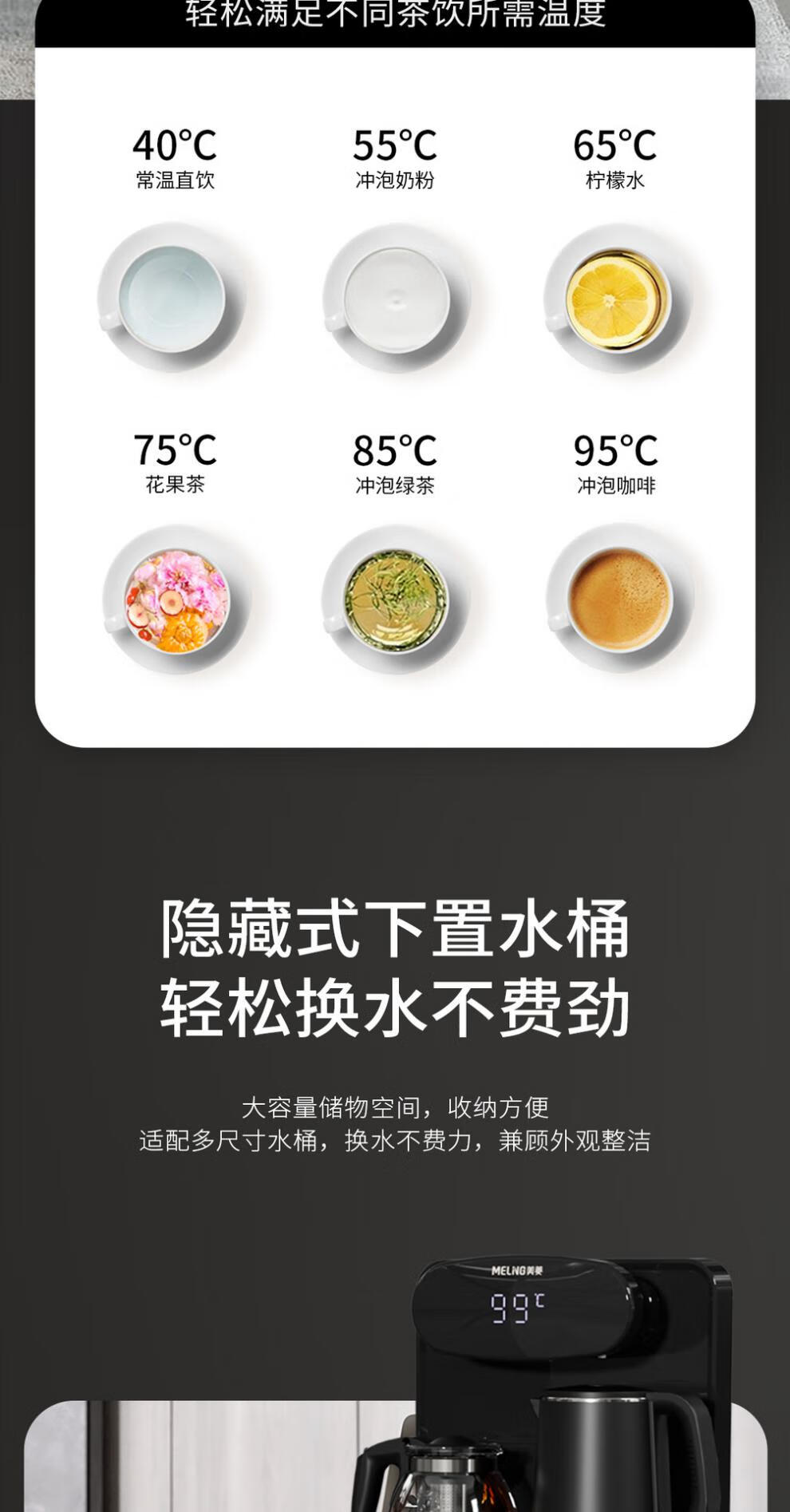 美菱(MeiLing)家用智能茶吧机液体加热器多档控温下置水桶大屏数显 MY-YT935