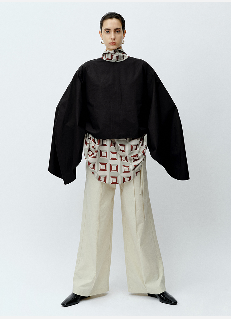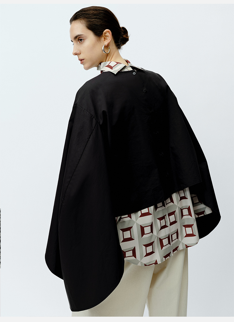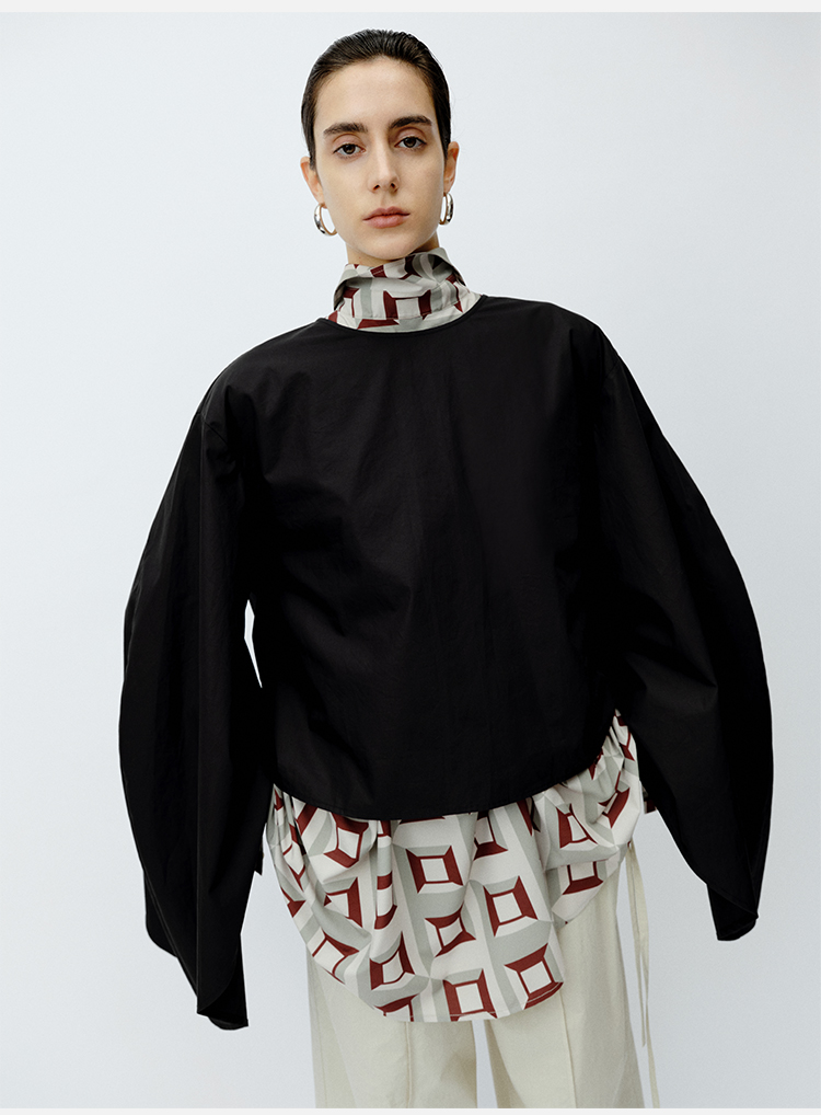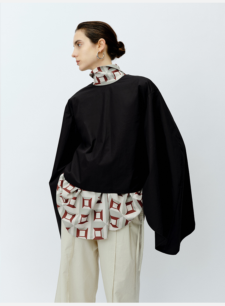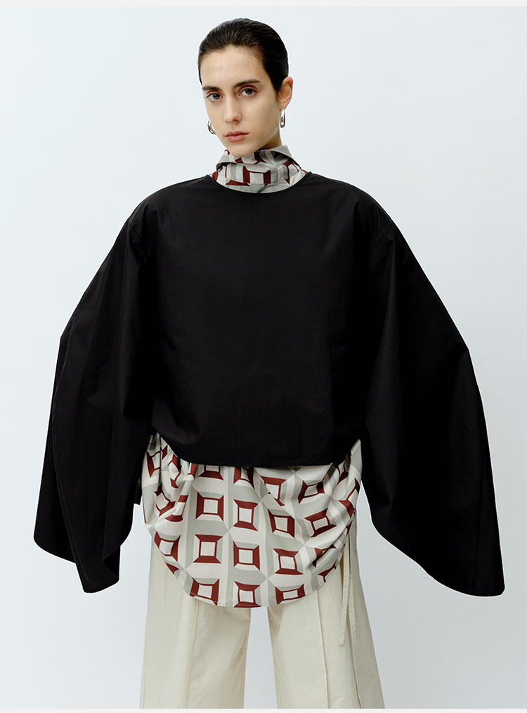 HIDEMI 极简大廓形袖前后两穿衬衫 黑色/白色