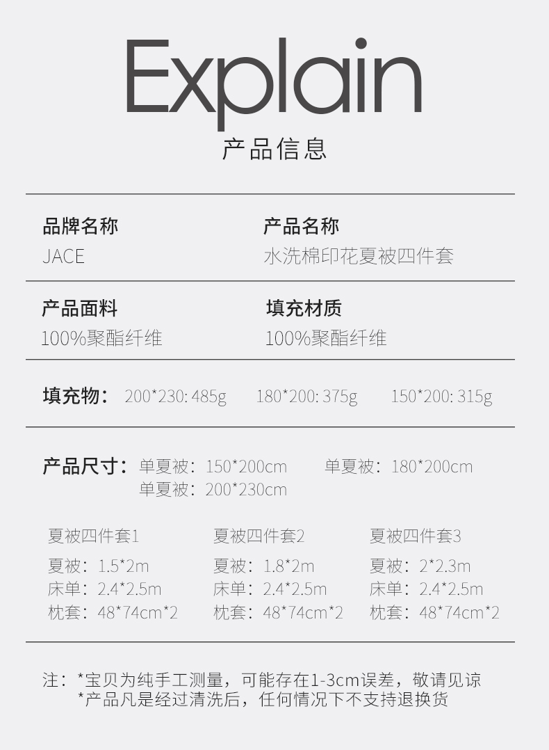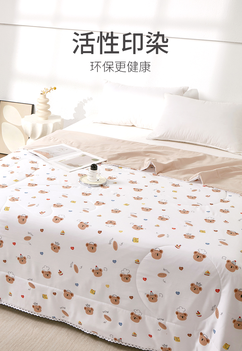 JACE久适水洗棉夏被印花四件套 夏凉被学生宿舍单人空调被 清新印花夏日舒睡薄被