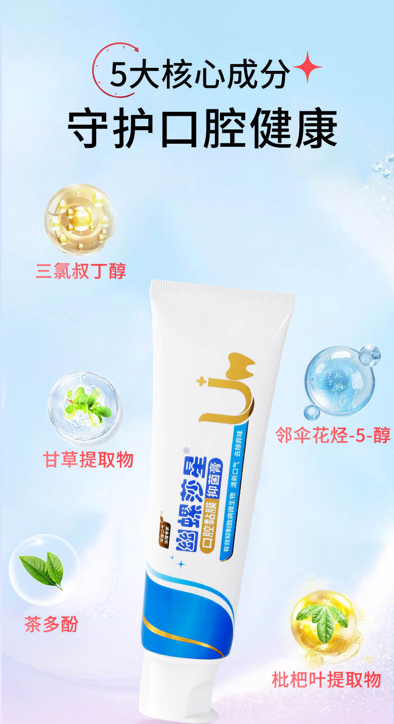 幽螺莎星口腔黏膜抑菌膏5支装 清新口气除口腔异味清洁护龈 送牙刷2支