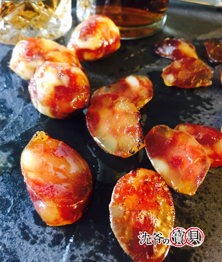 2017年小肉弹切片新食法!沈爷近来发明了一个更为便捷的方法:把一粒小肉弹纵向切成三片,用喷火枪分两面略加烧灼8秒左右(视火力大小而定),灼至冒油起泡后即食!