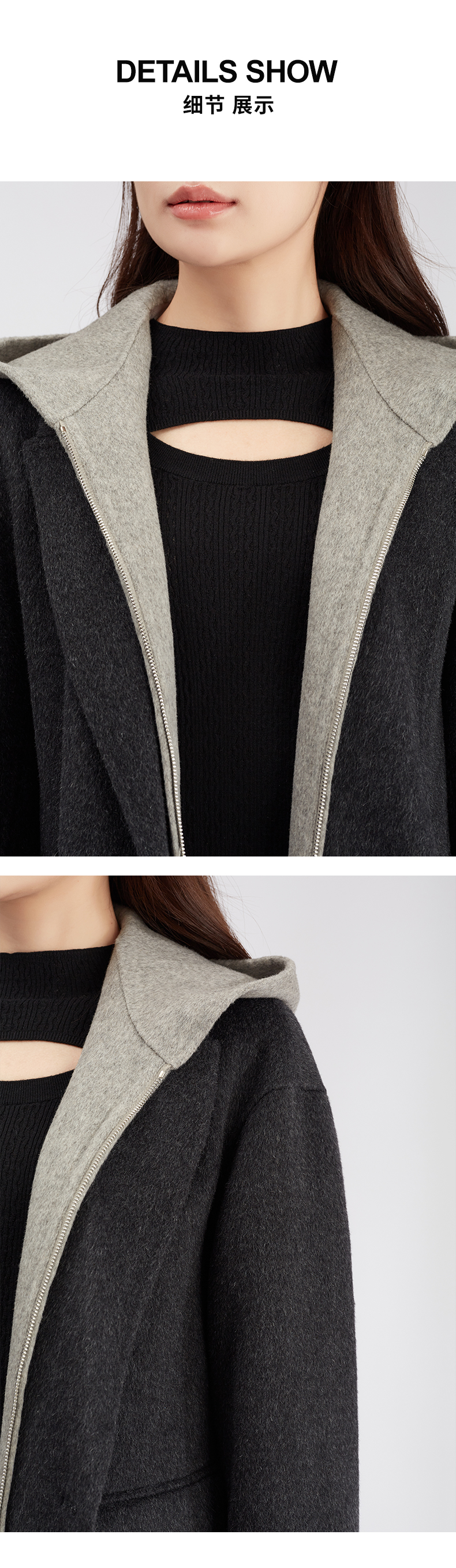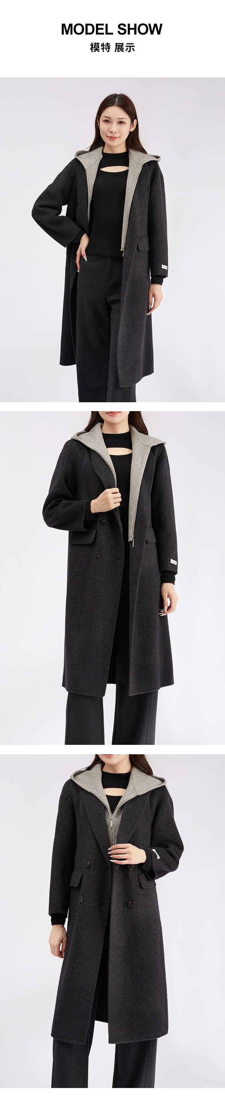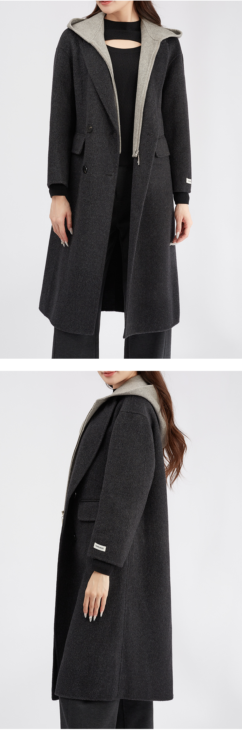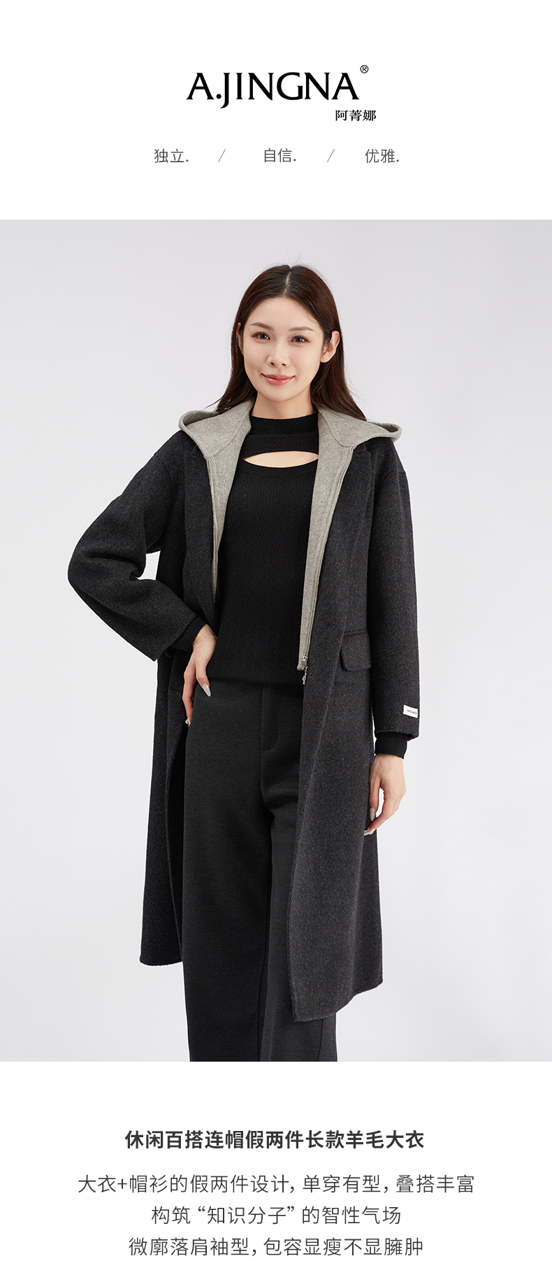 【商城同款】阿菁娜休闲百搭连帽假两件长款羊毛大衣F30D211023