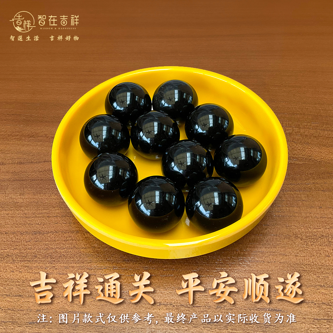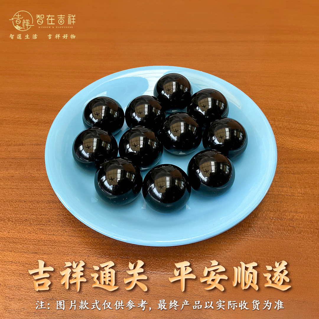 【智在吉祥】十二神数家居增福摆件套装10颗黑色珠子+咖啡色、蓝色、黄色托盘