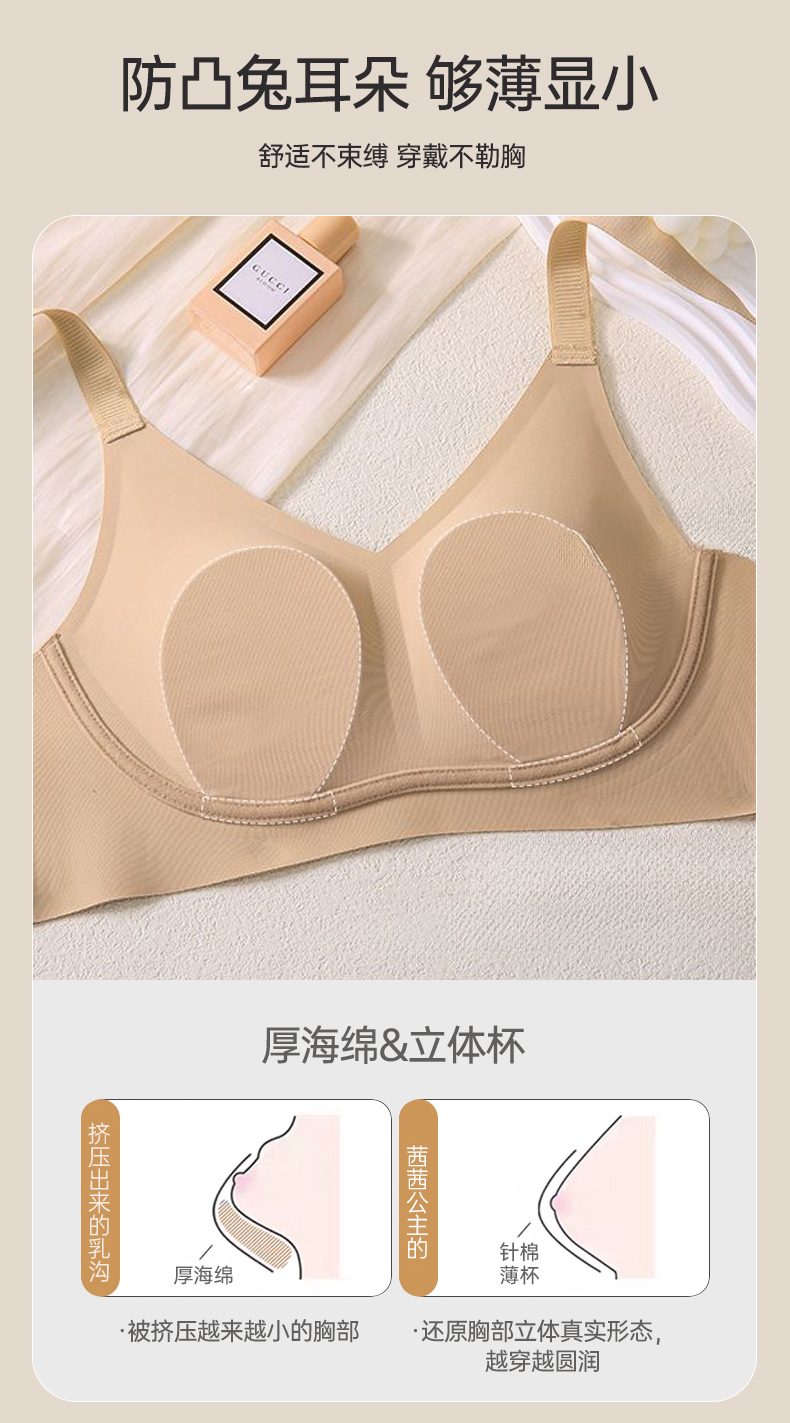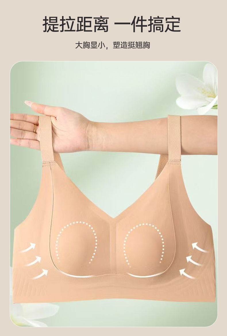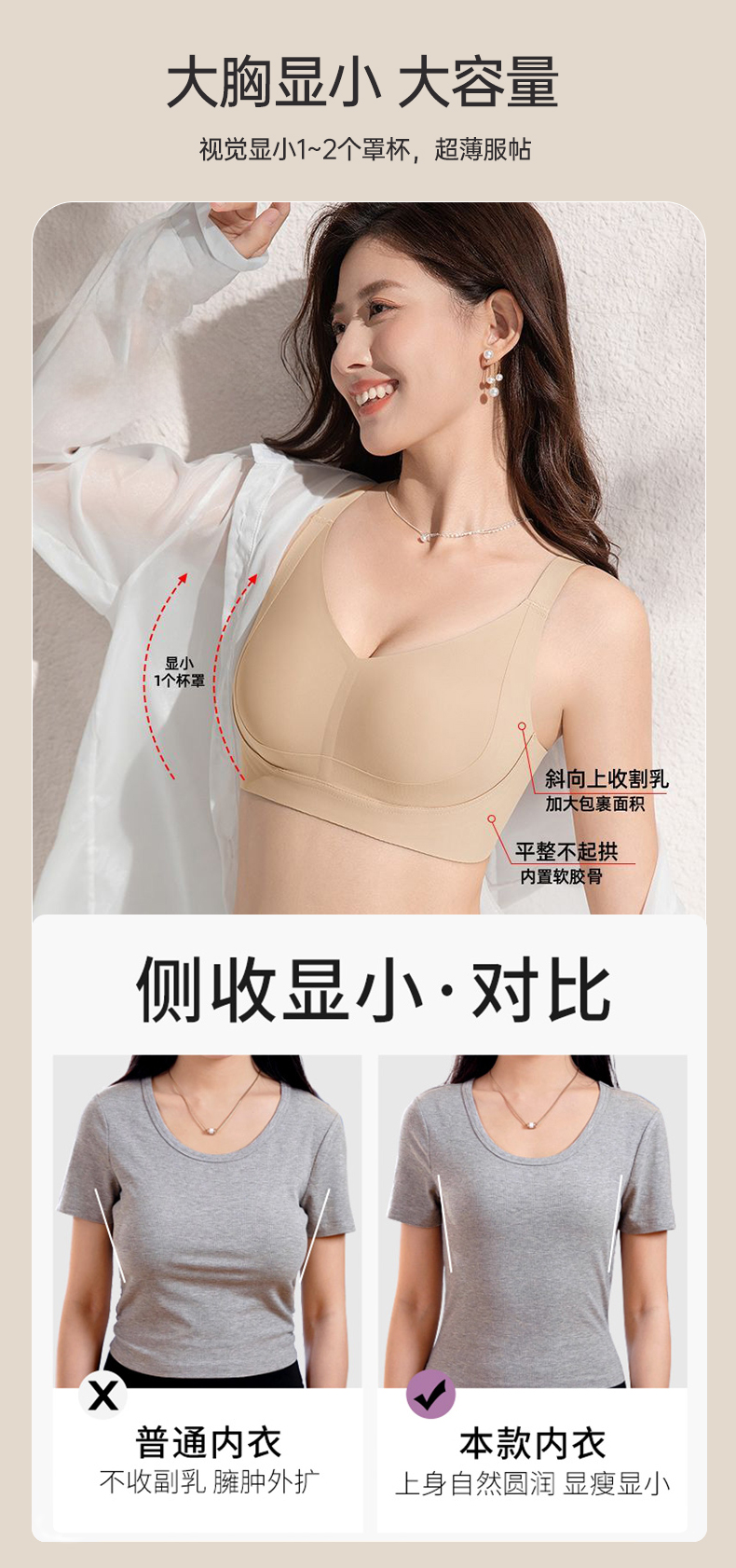 素帛光面文胸软钢圈大胸显小光面无痕收副乳