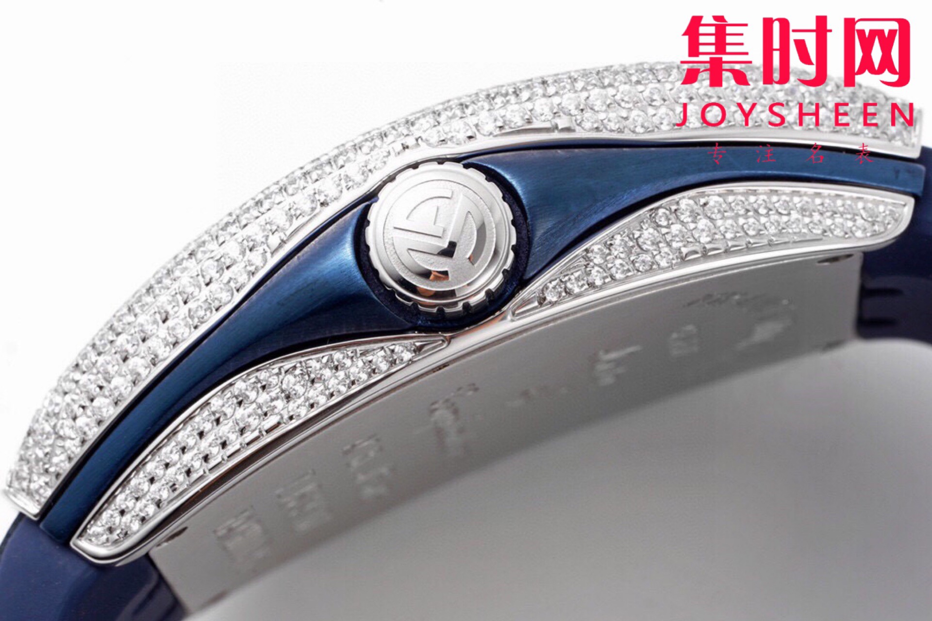 1.表壳100%原版开模 特别是三明治结构表壳 中间内侧 蓝色的侧槽和把头位置凸出来的蓝色耳位 更是使表壳的制作过程更加困难。