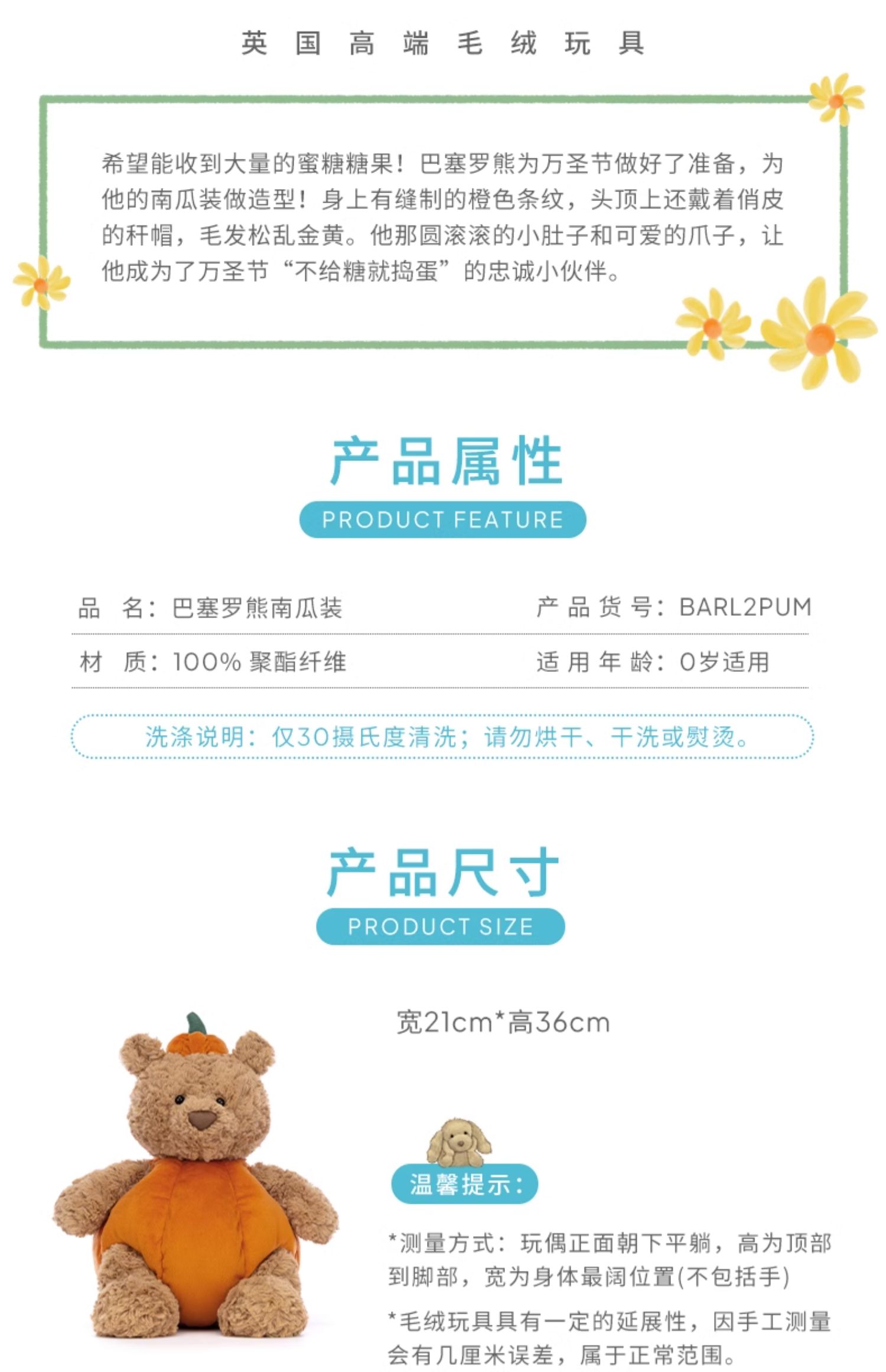 Jellycat 巴塞罗熊南瓜装 36cm