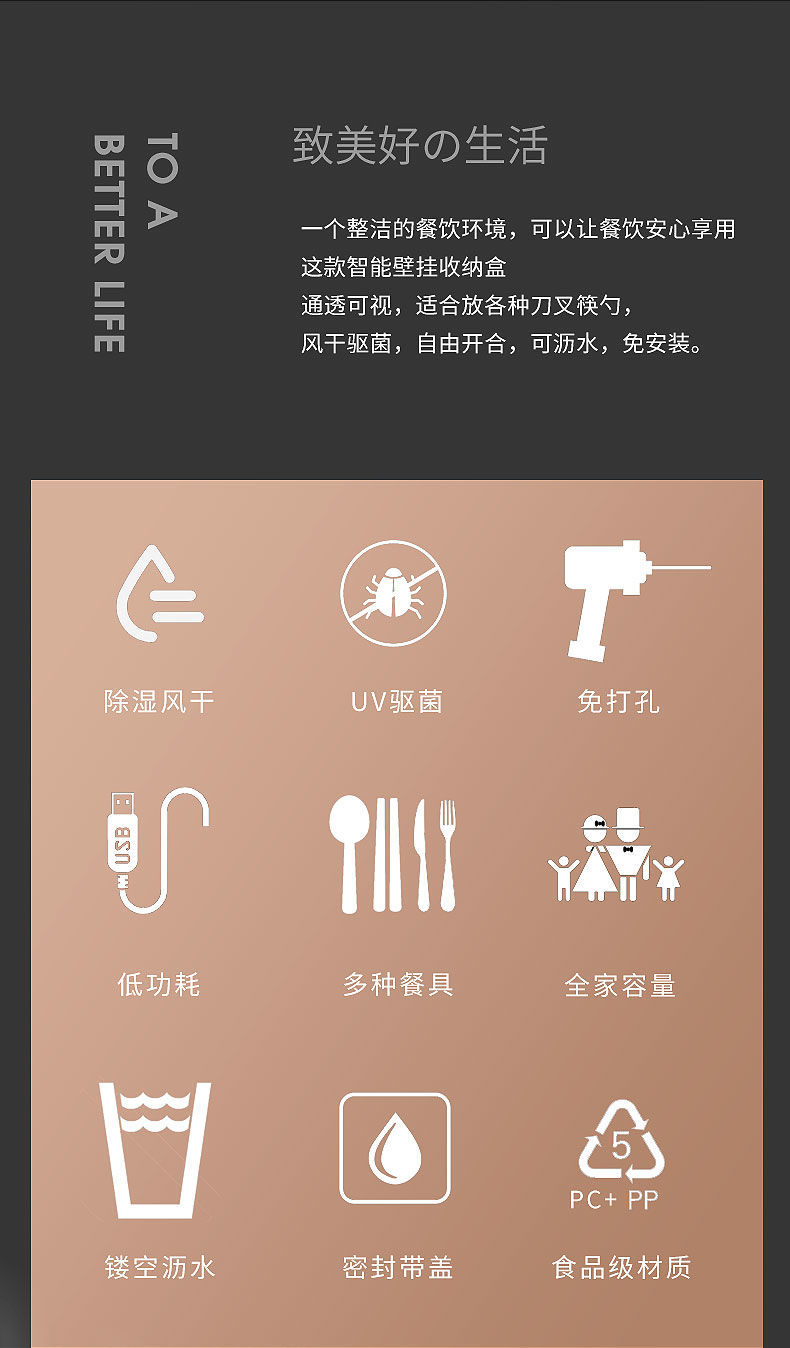智能筷子筒带盖沥水免打孔防霉壁挂式收纳盒全自动家用多功能(gxfc11)